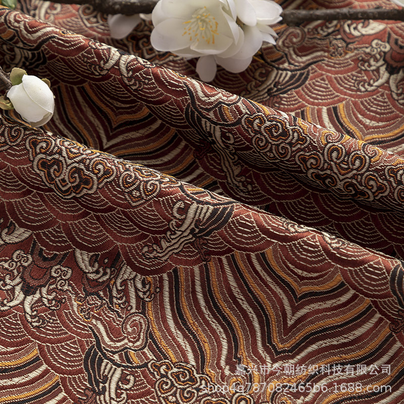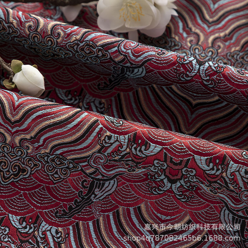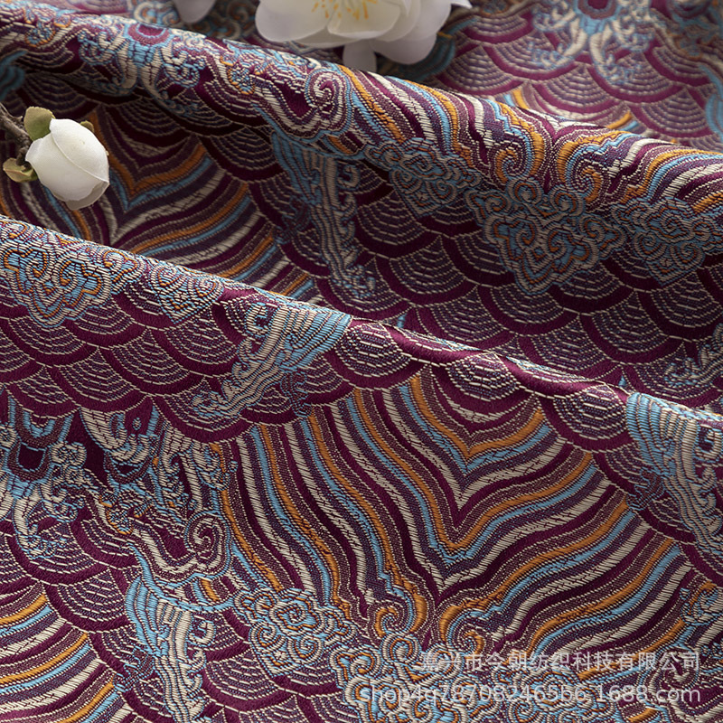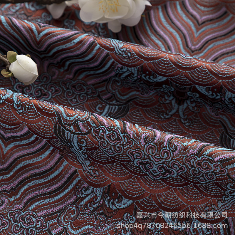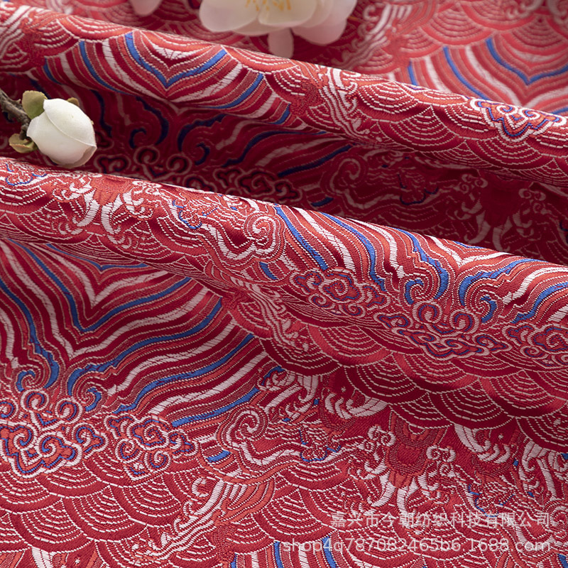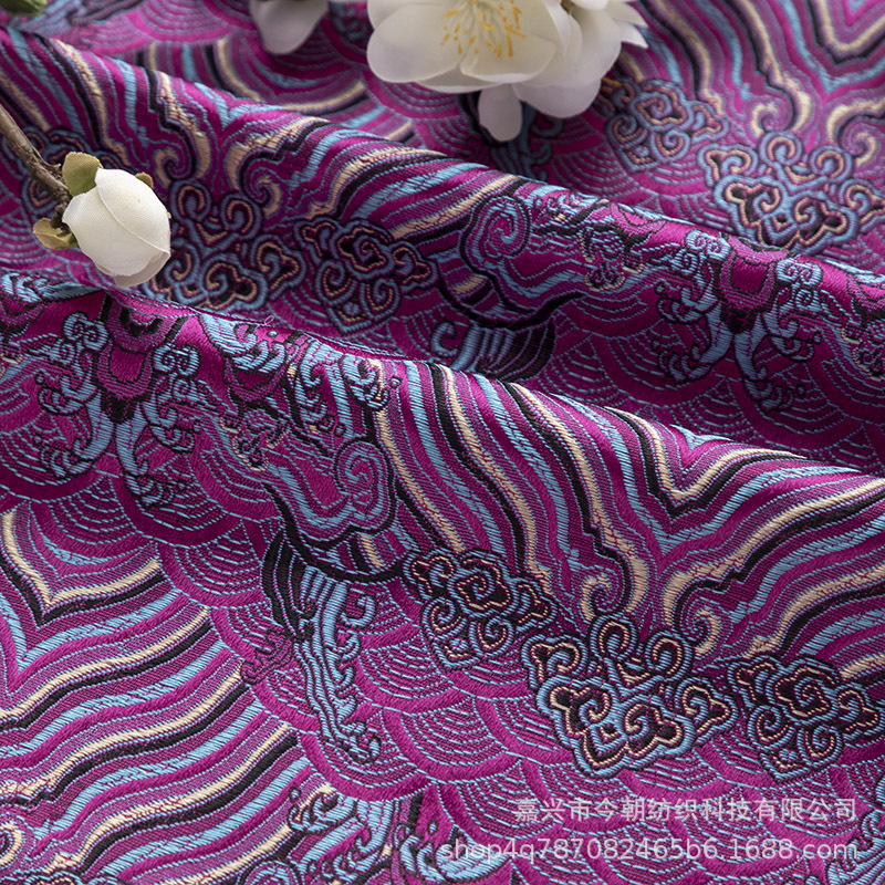 150 바다 파도 모조 브로케이드 원사 염색 자카드 원단 치파오 탕 세트 한푸 아동복 공예 포장 원단