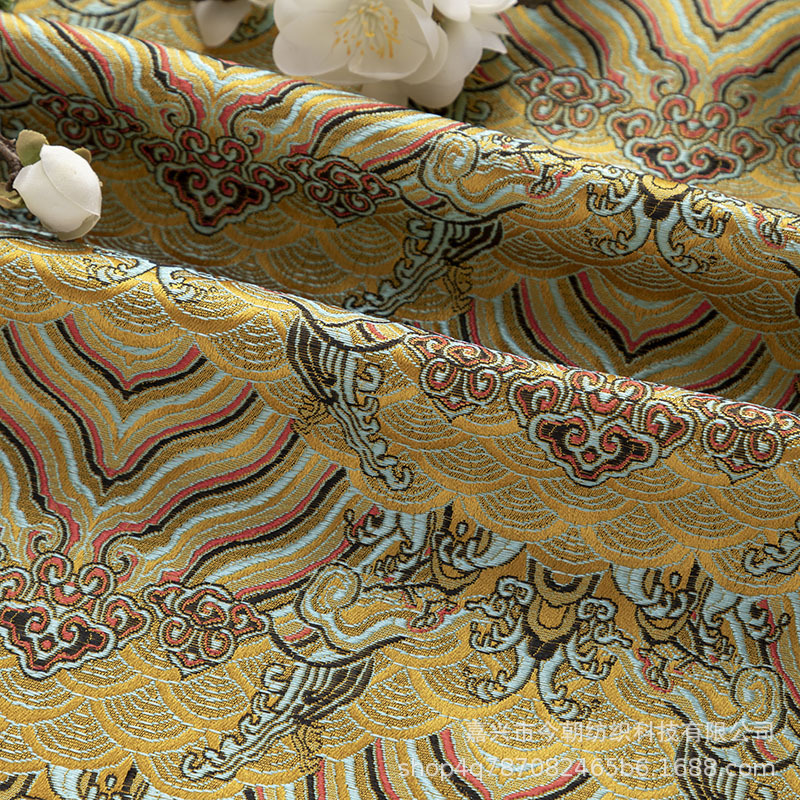 150 바다 파도 모조 브로케이드 원사 염색 자카드 원단 치파오 탕 세트 한푸 아동복 공예 포장 원단스토어 가기