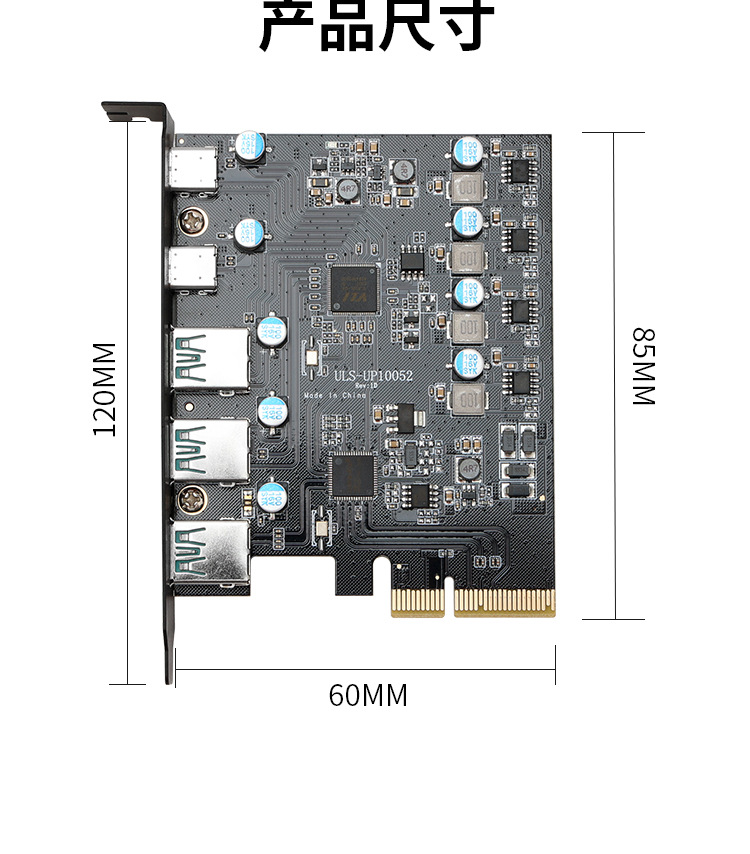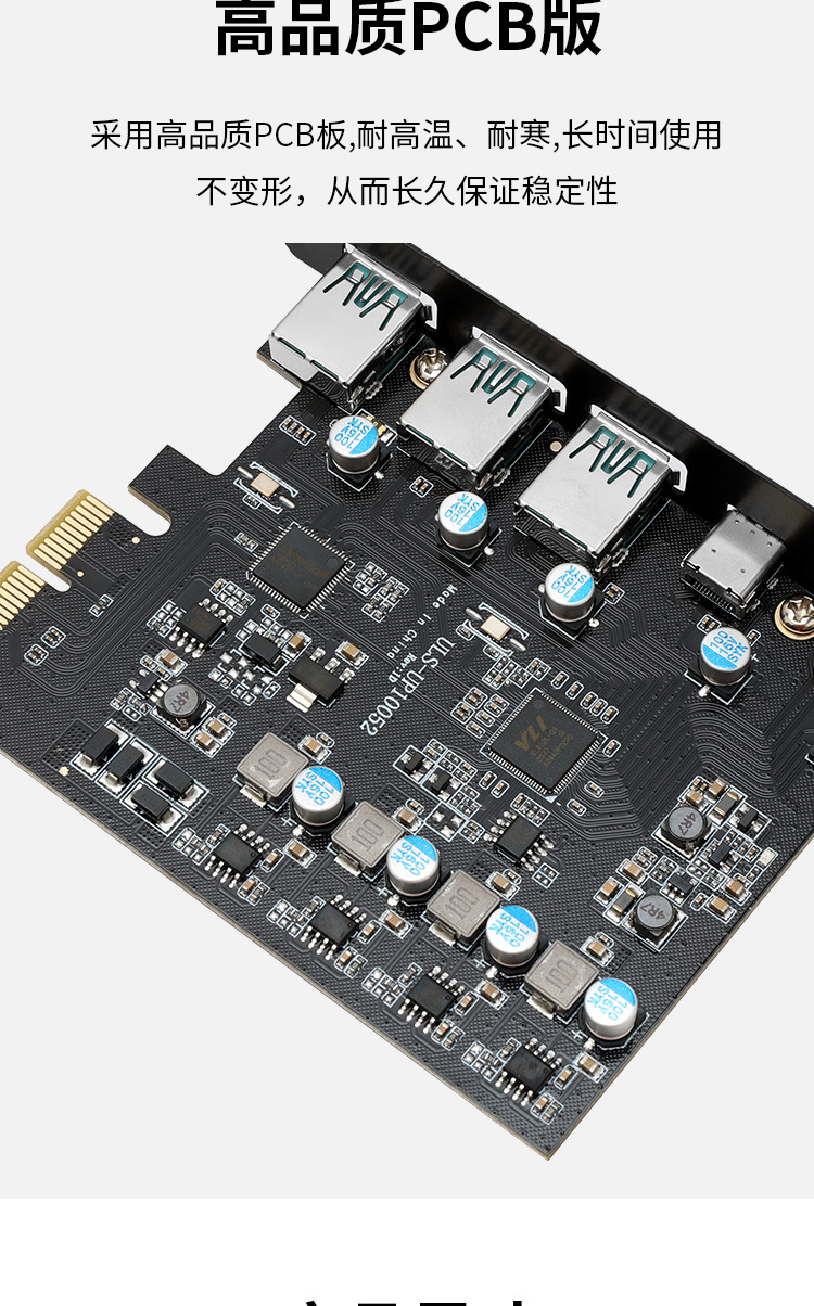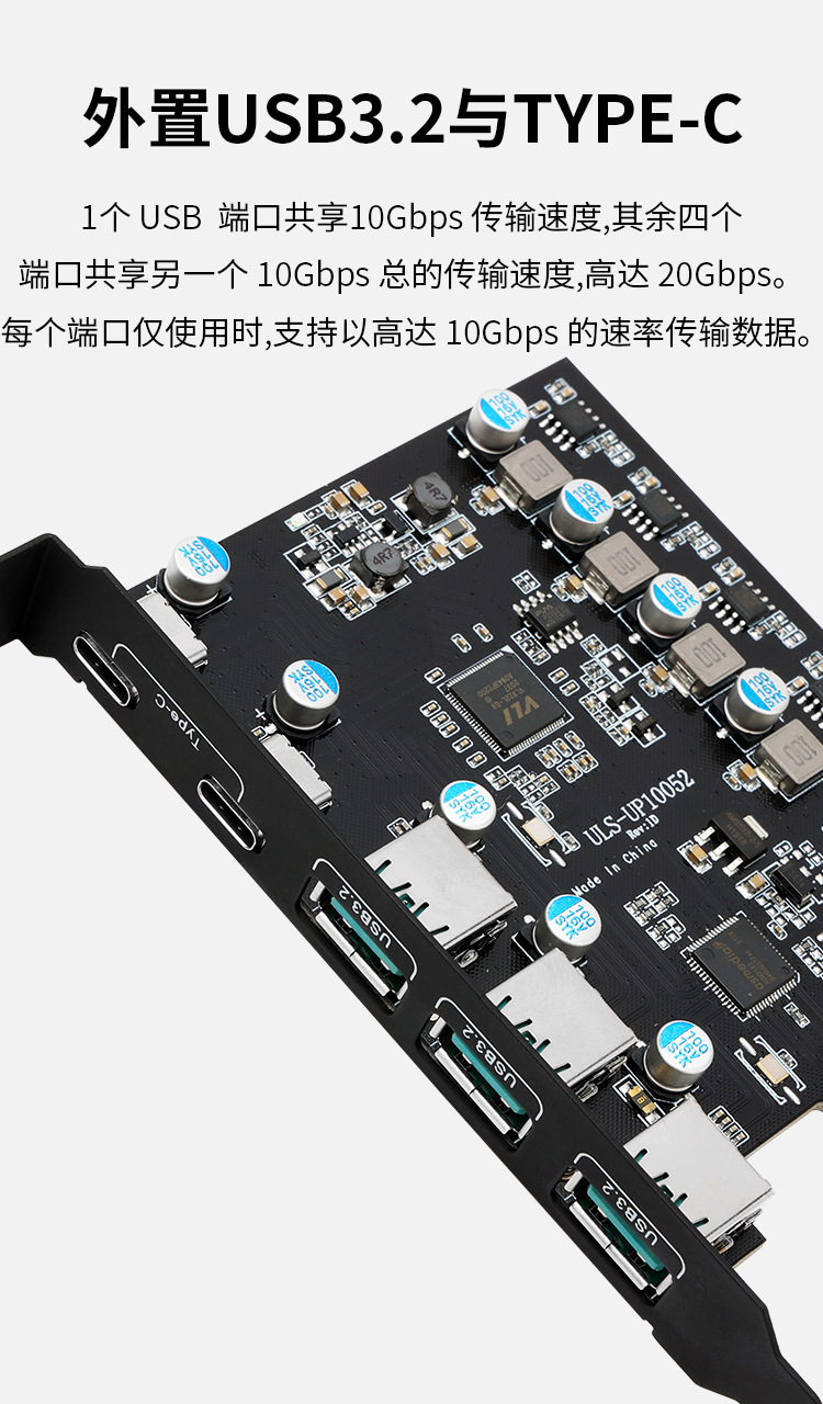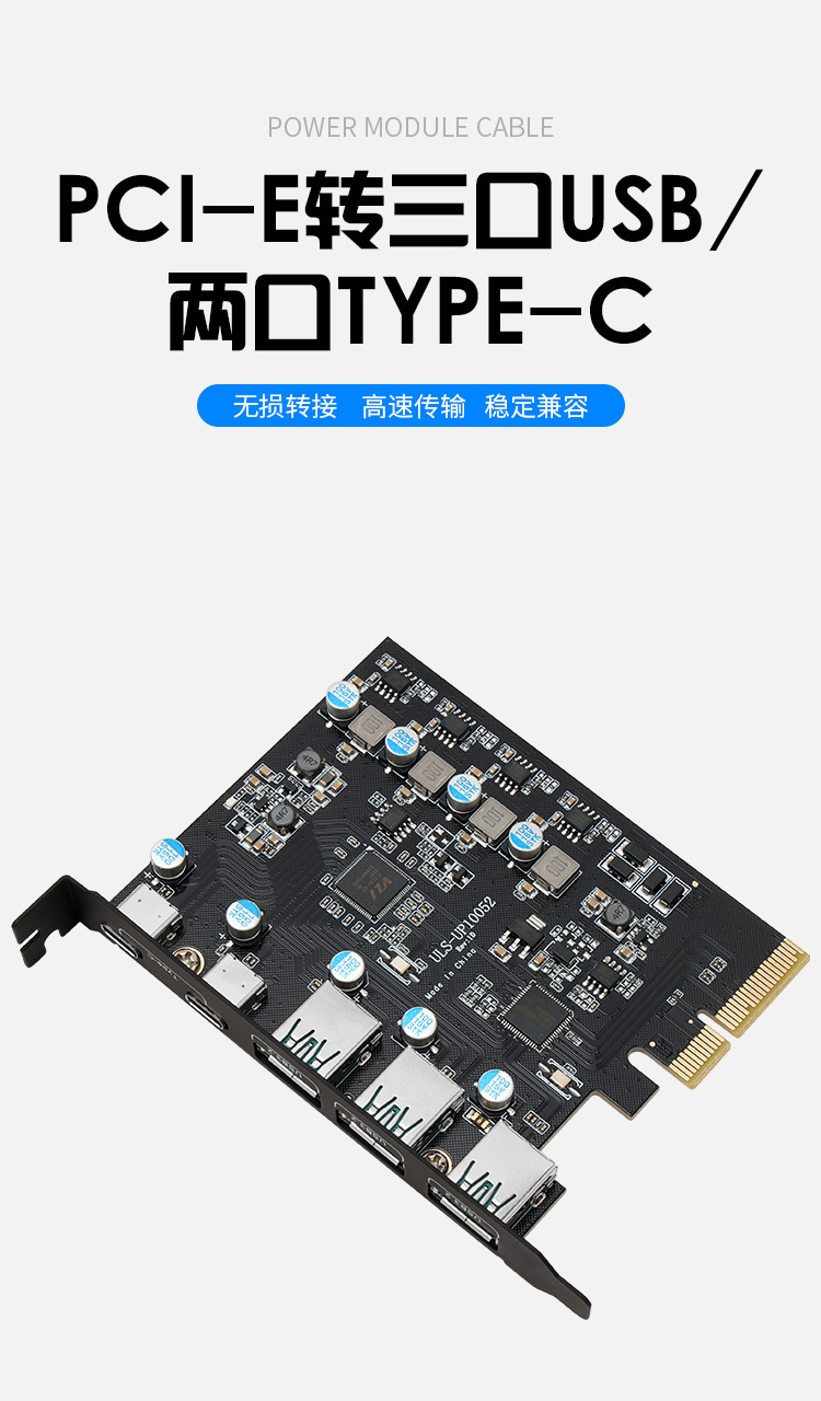 Usb3.2 확장 카드 3 포트 USB + 2 포트 타입-c 어댑터 카드 20Gbps 드라이브없는 데스크톱 어댑터 카드