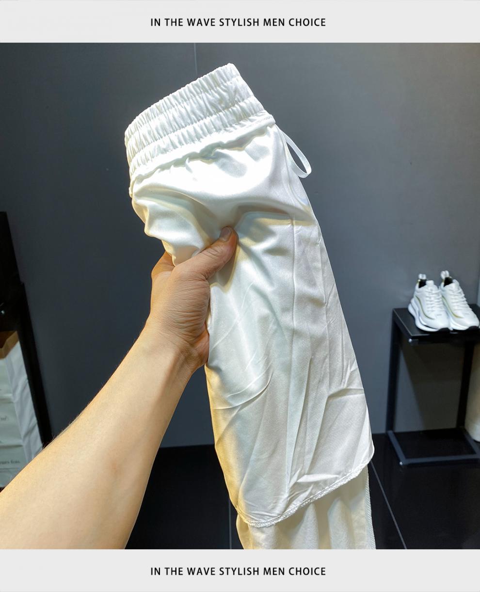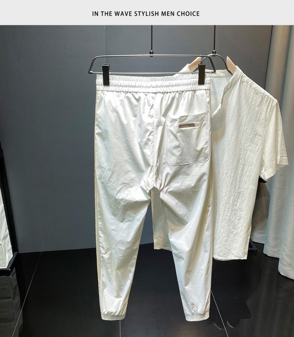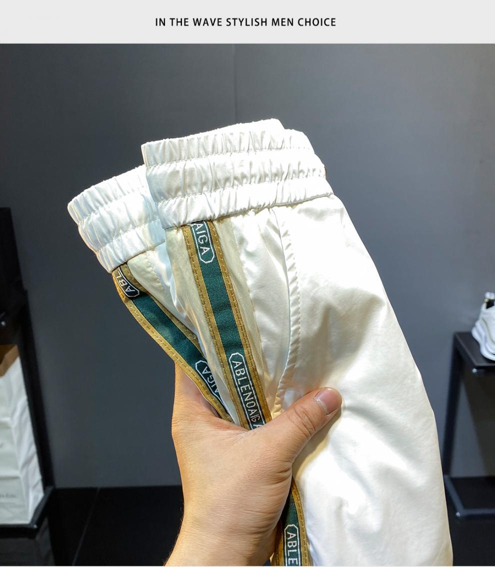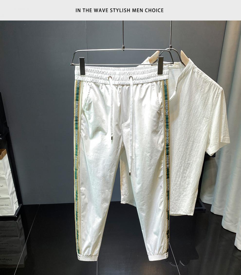 2022 여름 초박형 아이스 실크 사이드 스트라이프 레그 캐주얼 팬츠 남성용 트렌디 브랜드 슬림핏 드로스트링 나인포인트 스포츠 팬츠