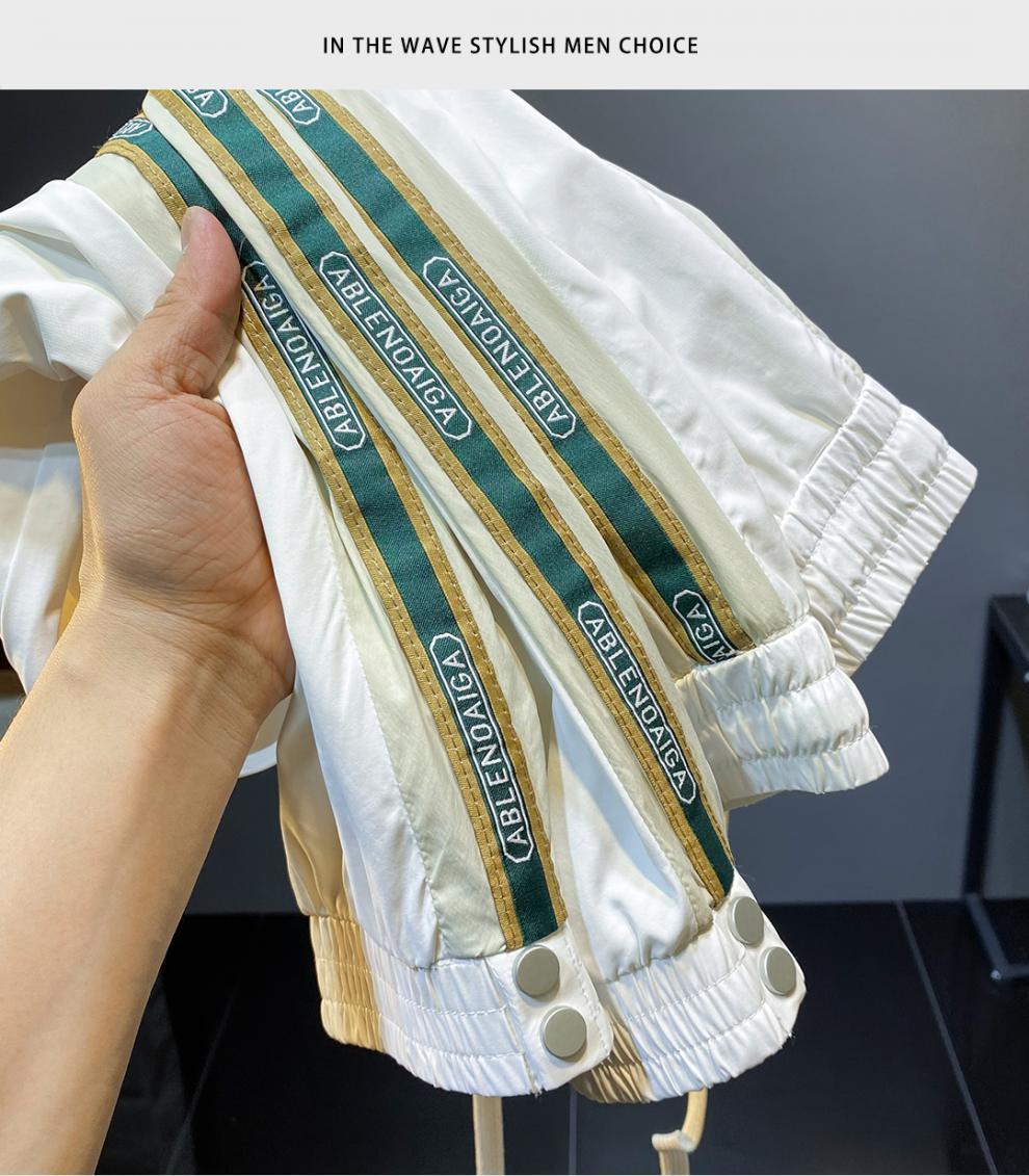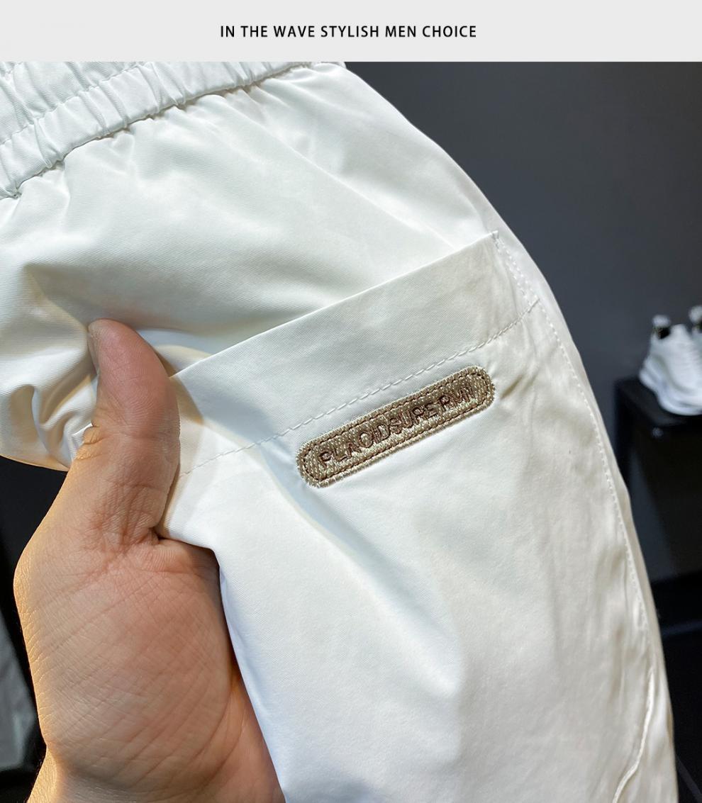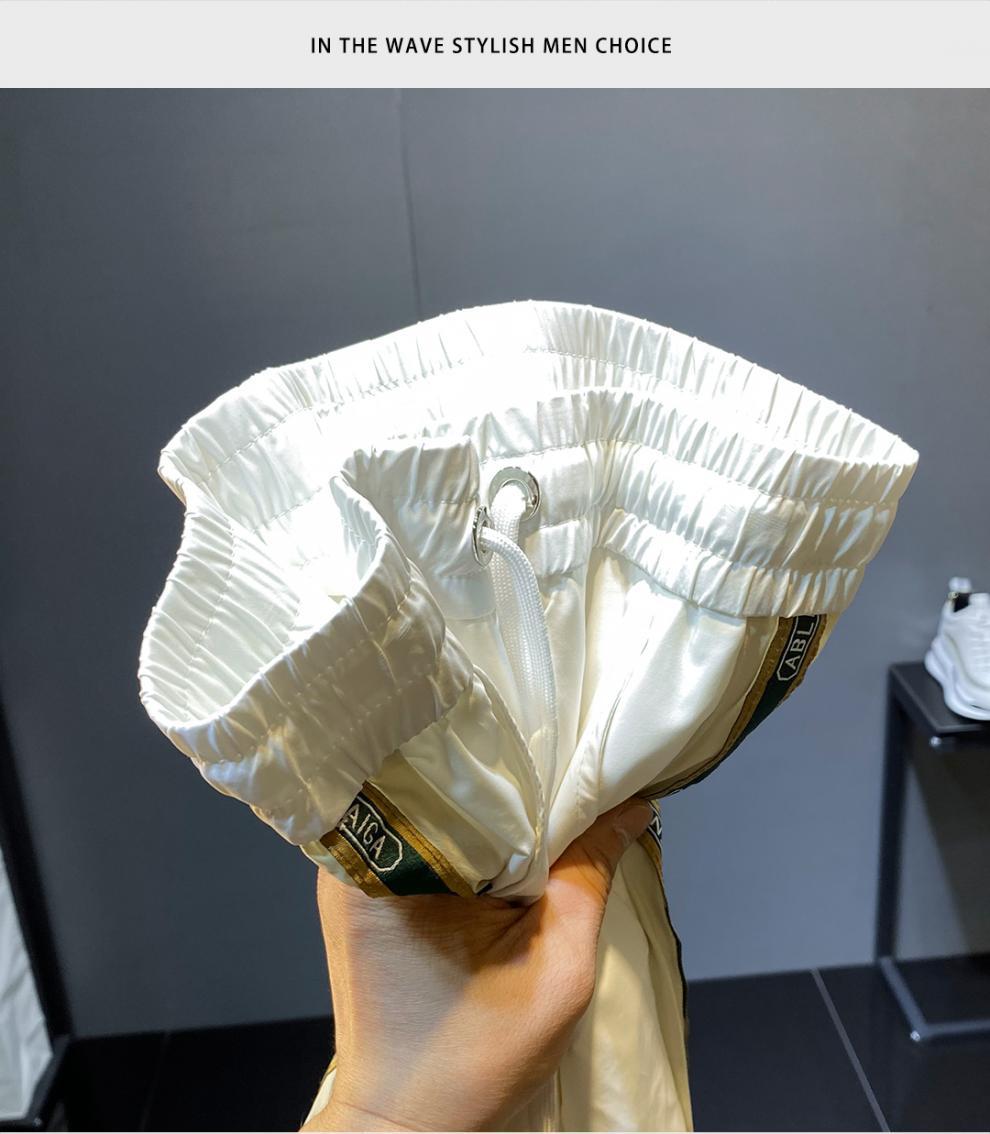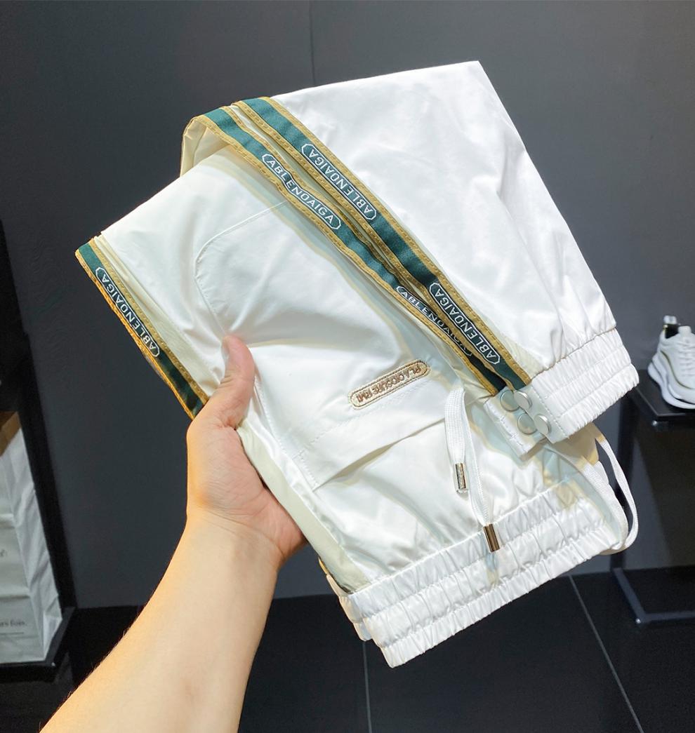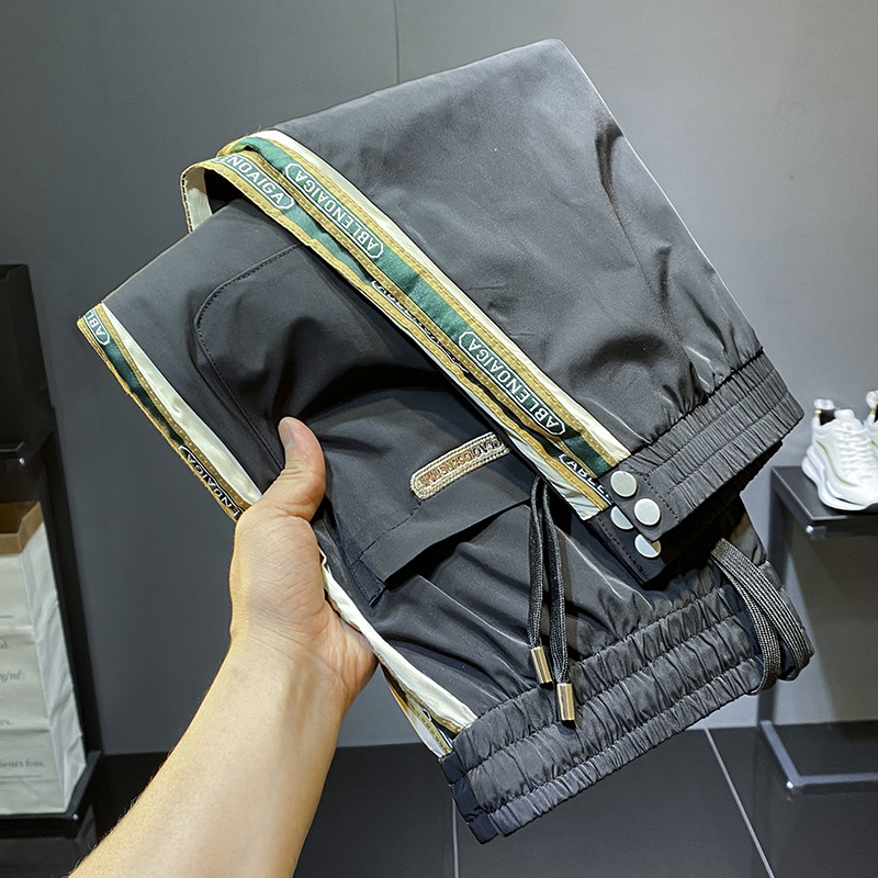 2022 여름 초박형 아이스 실크 사이드 스트라이프 레그 캐주얼 팬츠 남성용 트렌디 브랜드 슬림핏 드로스트링 나인포인트 스포츠 팬츠스토어 가기
