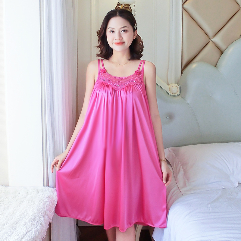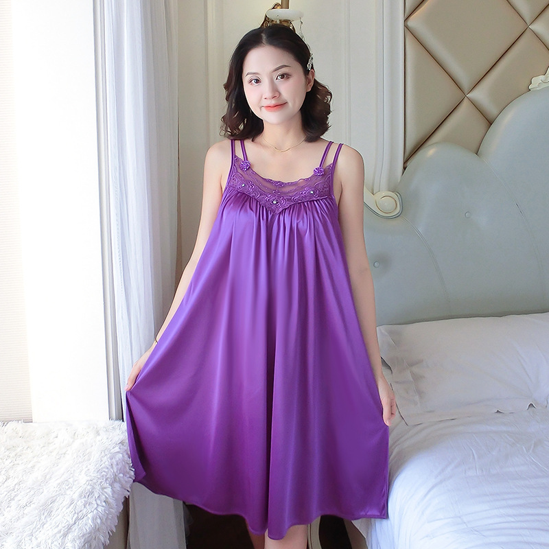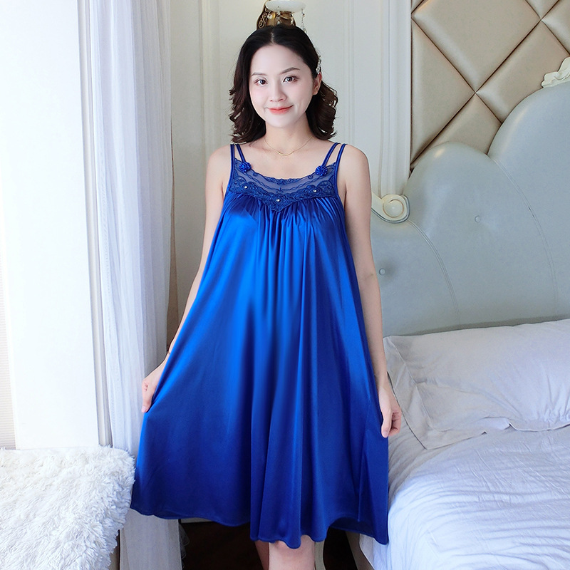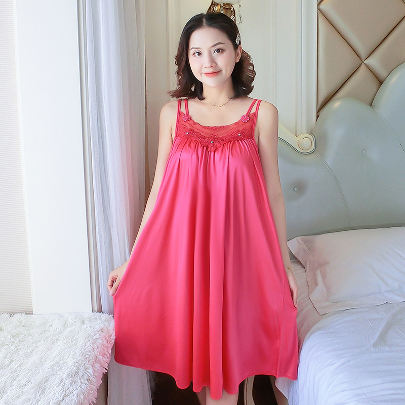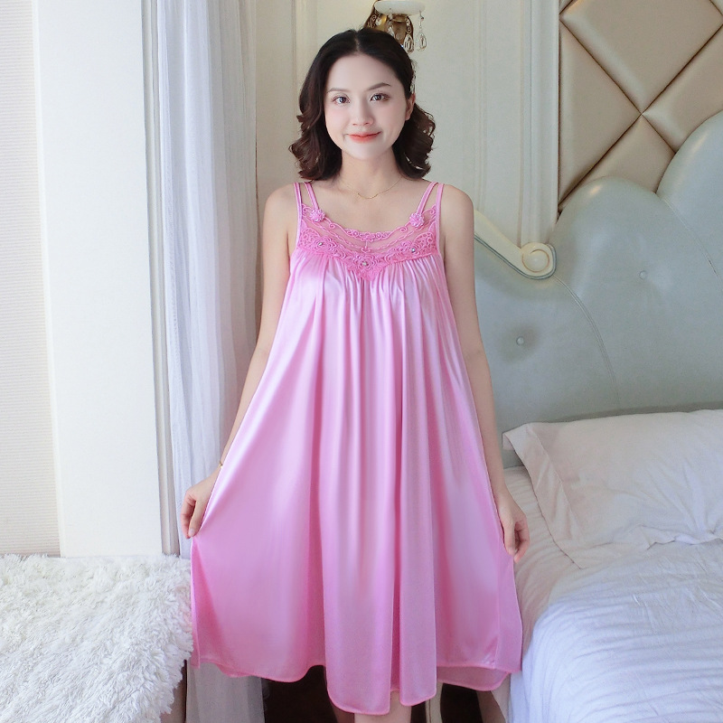 봄과 여름 실크 잠옷 여자의 섹시한 잠옷 여름 슬링 레이스 대형 원피스 싱글 느슨한 가정 옷스토어 가기