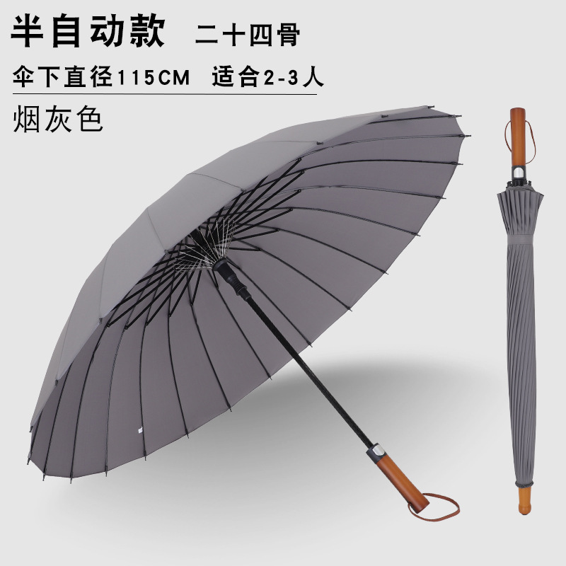 • 24K 나무 손잡이 긴 우산 그레이