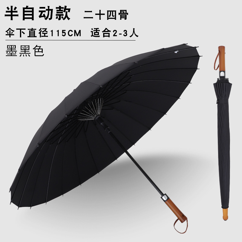 • 24K 나무 손잡이 긴 우산 블랙