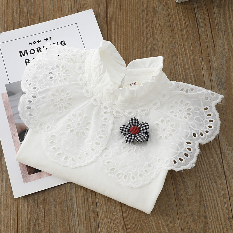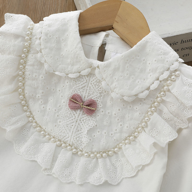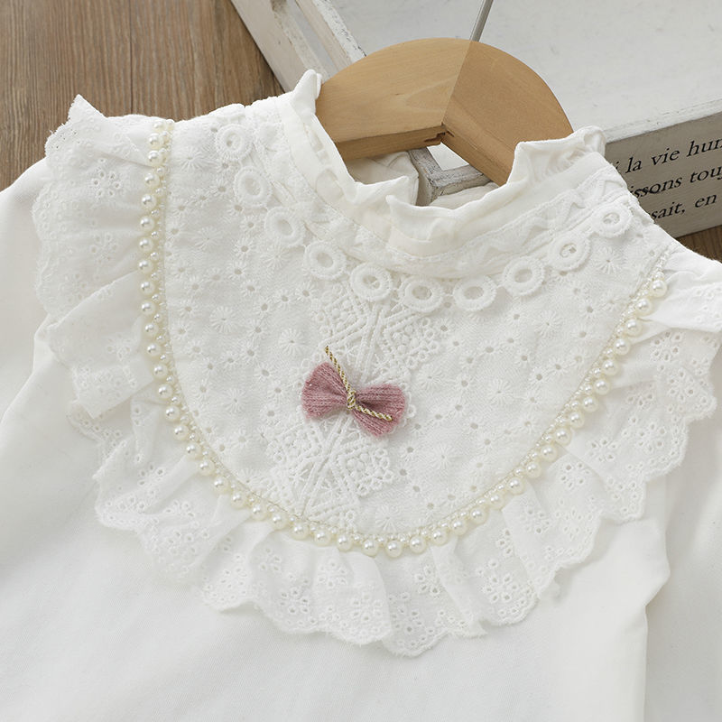 여아 화이트 티셔츠 탑 가을 어린이 옷깃 진주 셔츠 대형 어린이 소녀 레이스 베이스 셔츠
