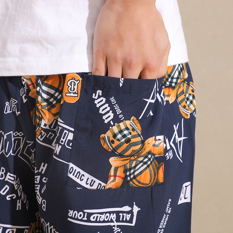코튼 실크 여름 남자 파자마 바지 얇은 캐주얼 반바지 느슨한 외부 착용 홈 바지 플러스 사이즈 바지 스포츠스토어 가기
