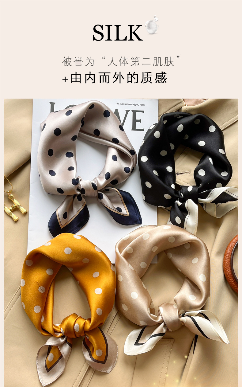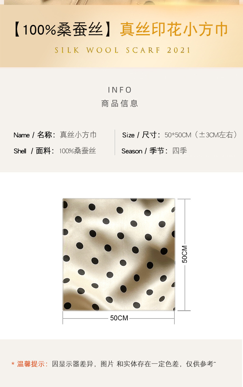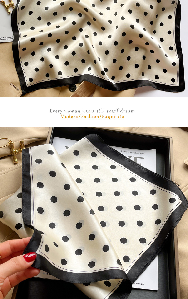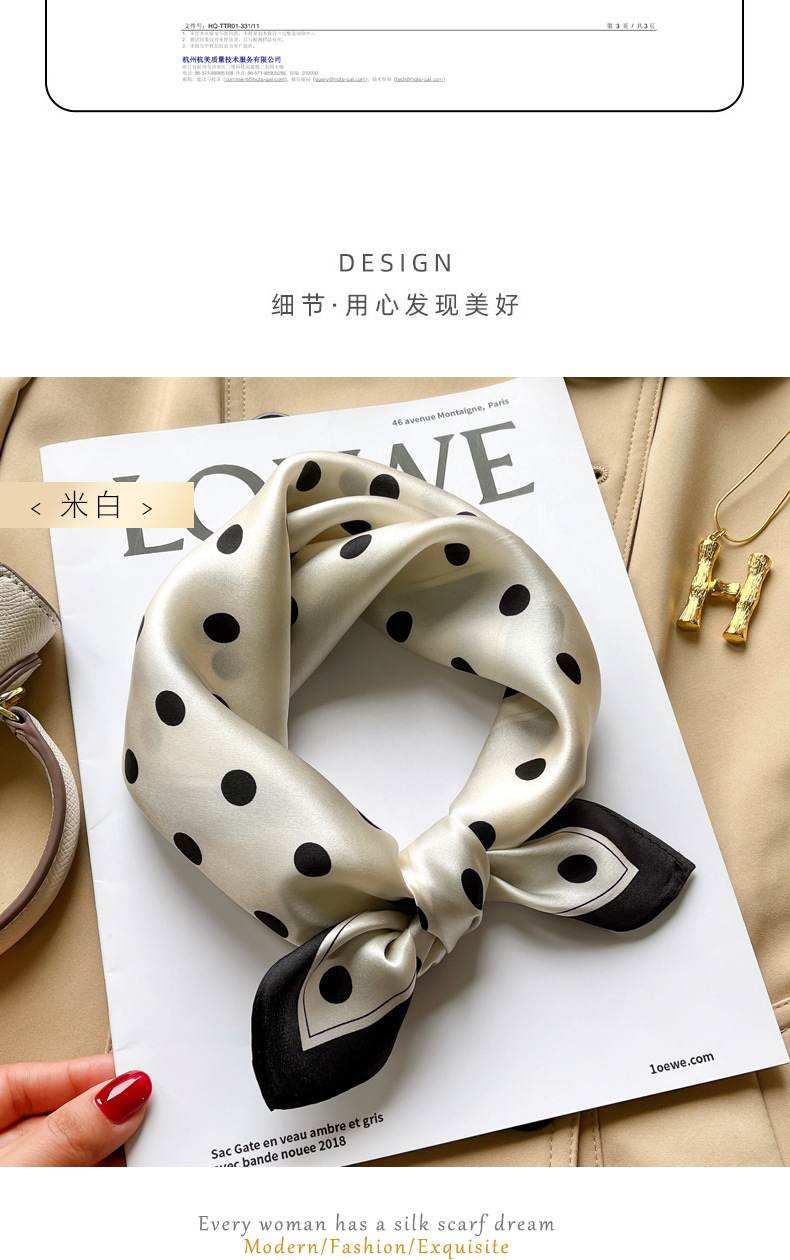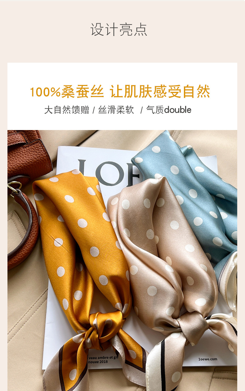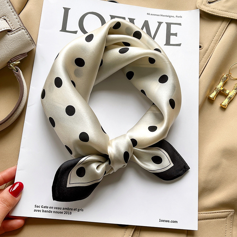 [폴로 도트] 레트로 아이보리 실크 스카프 여성용 뽕나무 실크 스카프 작은 사각 스카프 봄과 가을 겨울 모든 경기 도매