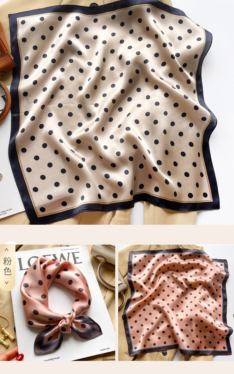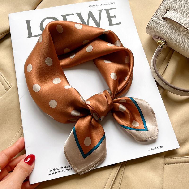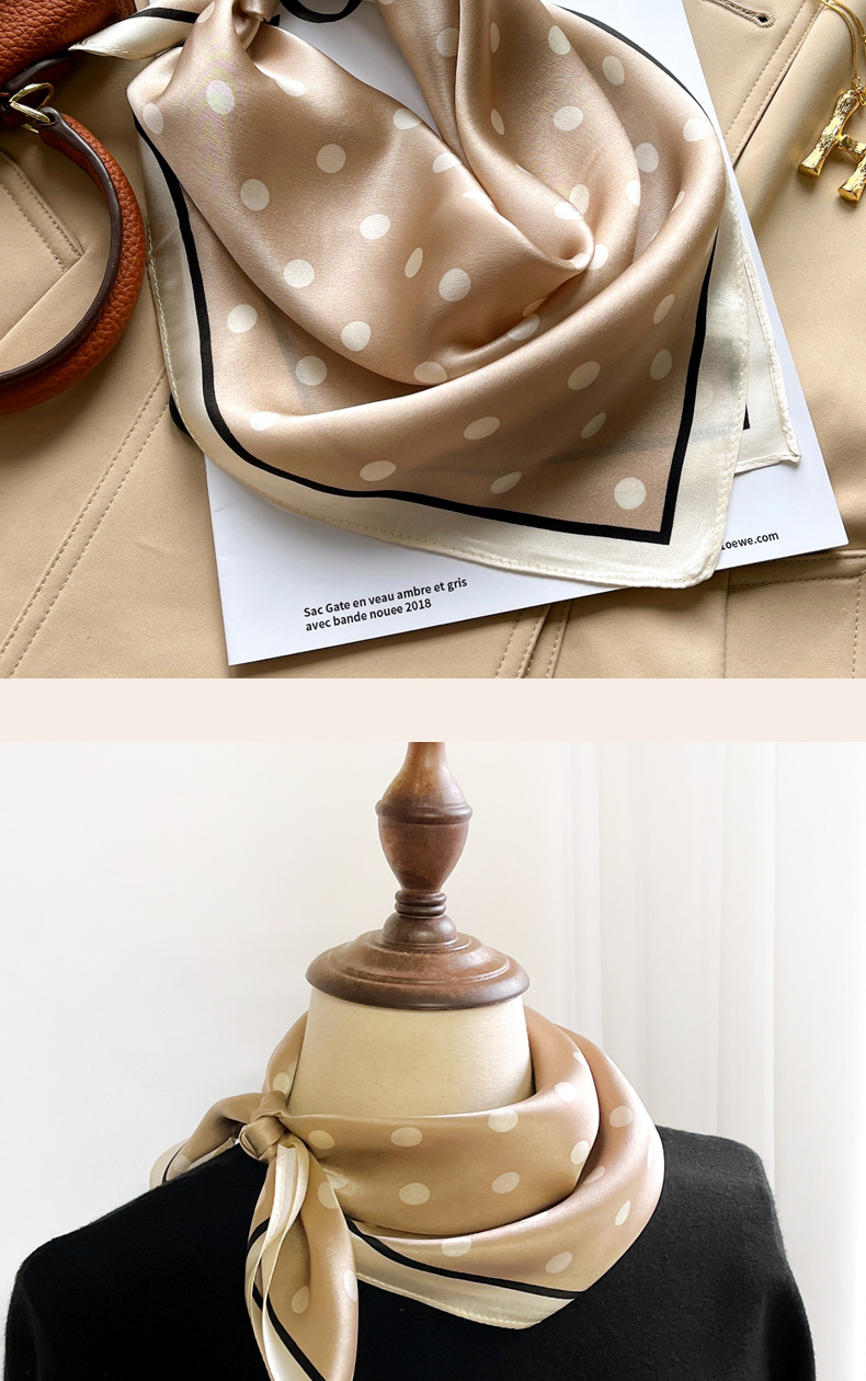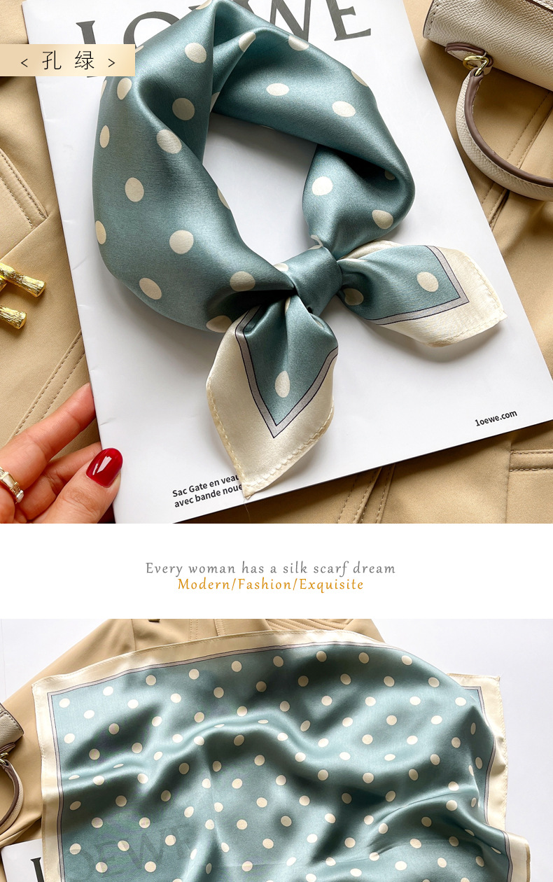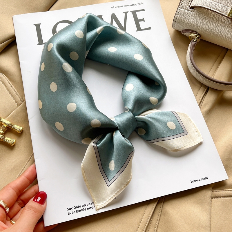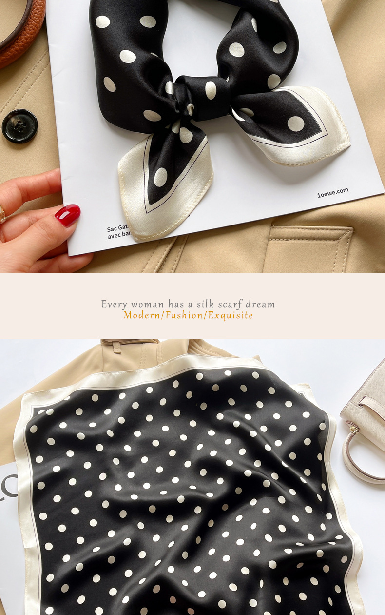 [폴로 도트] 레트로 아이보리 실크 스카프 여성용 뽕나무 실크 스카프 작은 사각 스카프 봄과 가을 겨울 모든 경기 도매