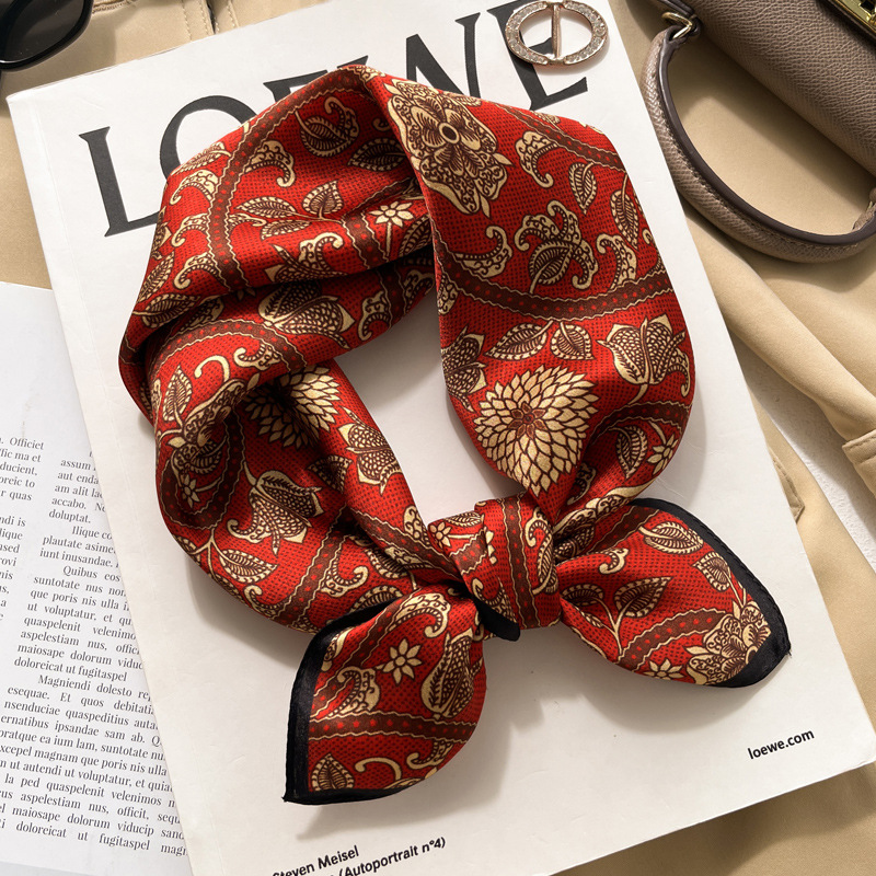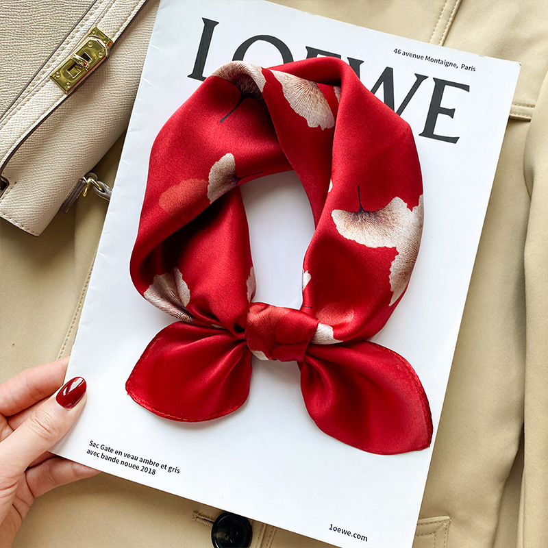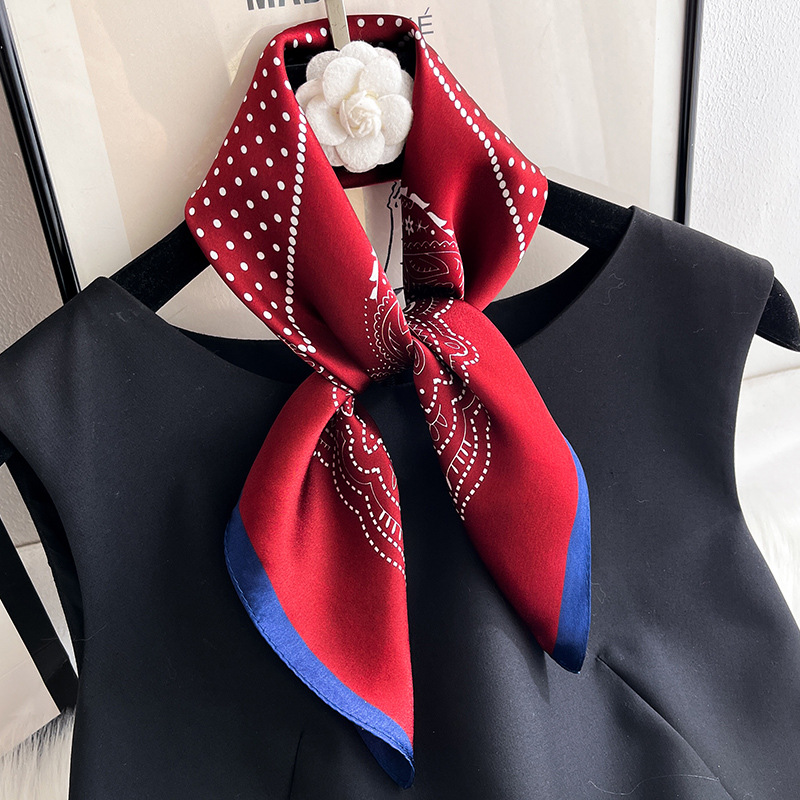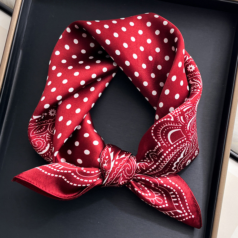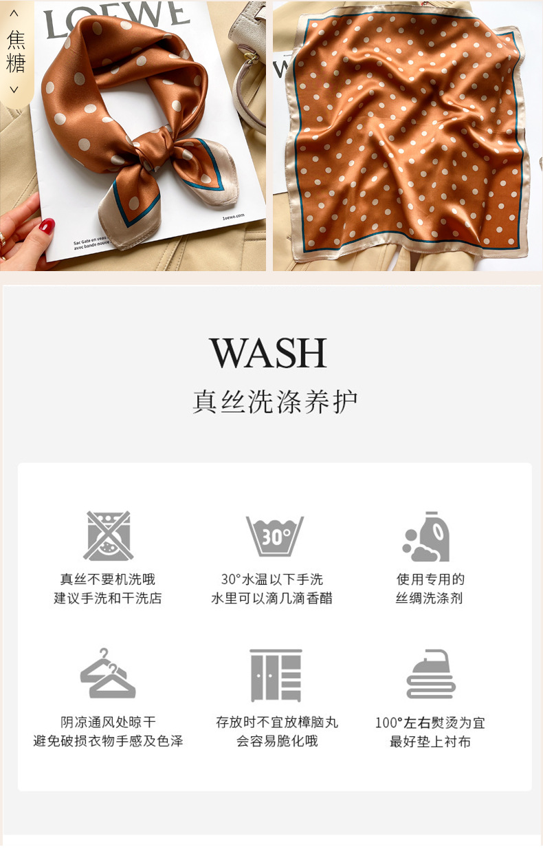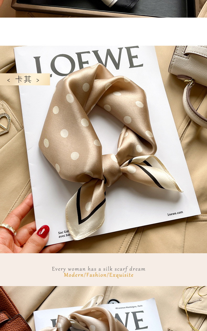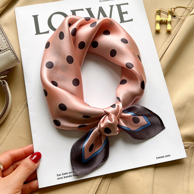 [폴로 도트] 레트로 아이보리 실크 스카프 여성용 뽕나무 실크 스카프 작은 사각 스카프 봄과 가을 겨울 모든 경기 도매