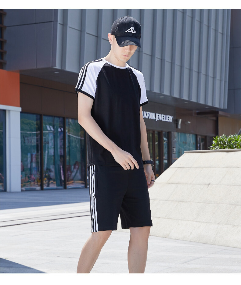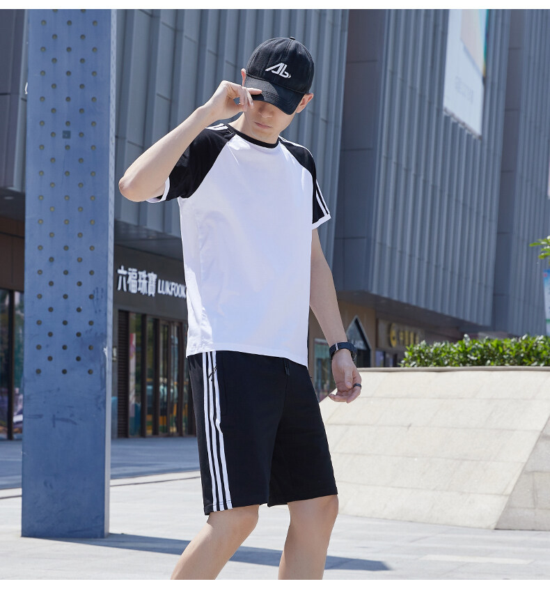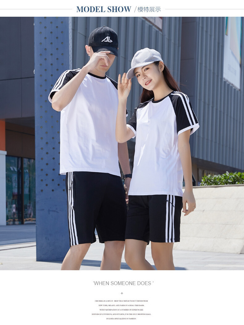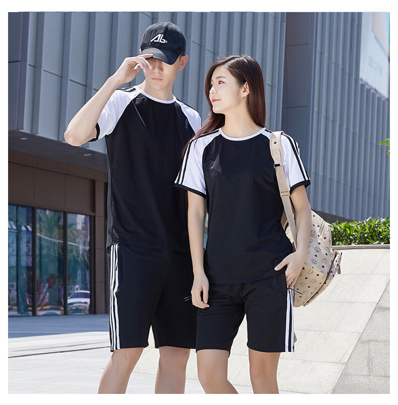 2022 잘생긴 하이핏 스포츠웨어 세트 면 남성과 여성 커플 세트 반팔 반바지 투피스 세트스토어 가기