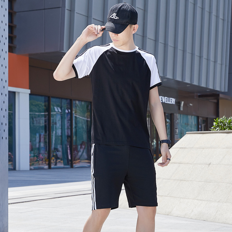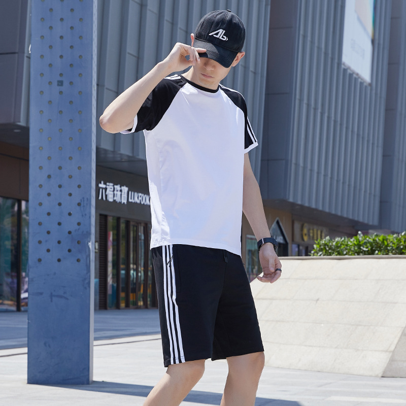 2022 잘생긴 하이핏 스포츠웨어 세트 면 남성과 여성 커플 세트 반팔 반바지 투피스 세트