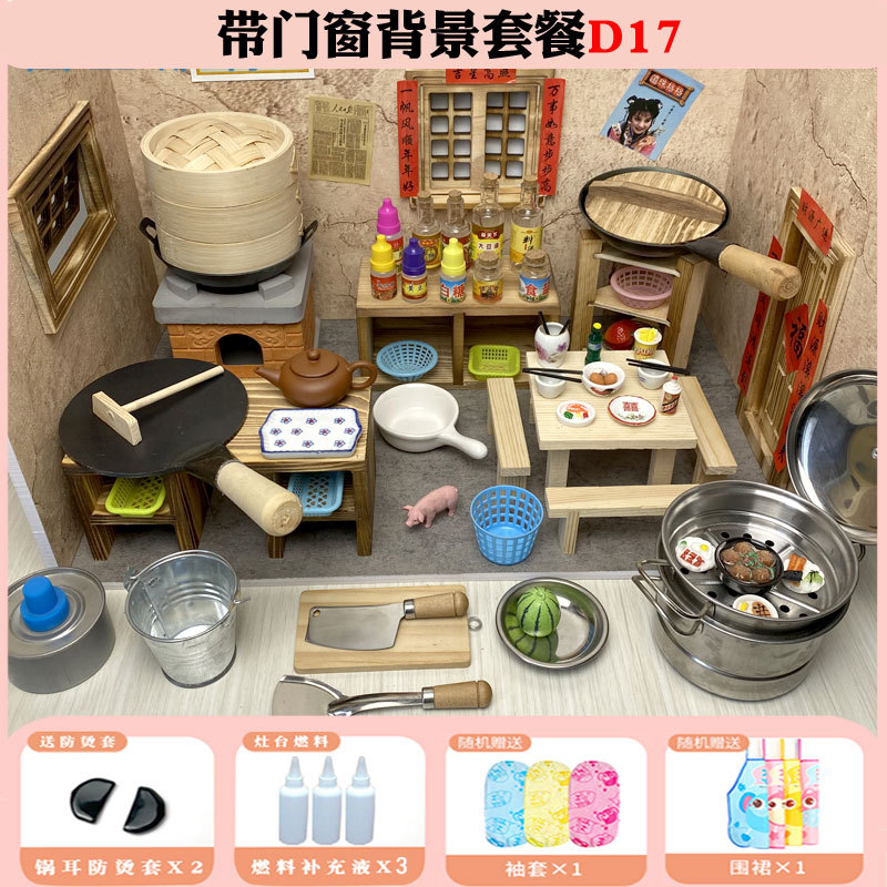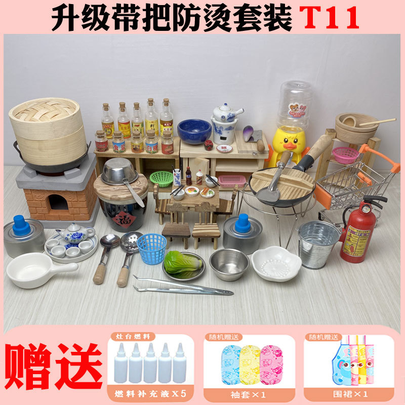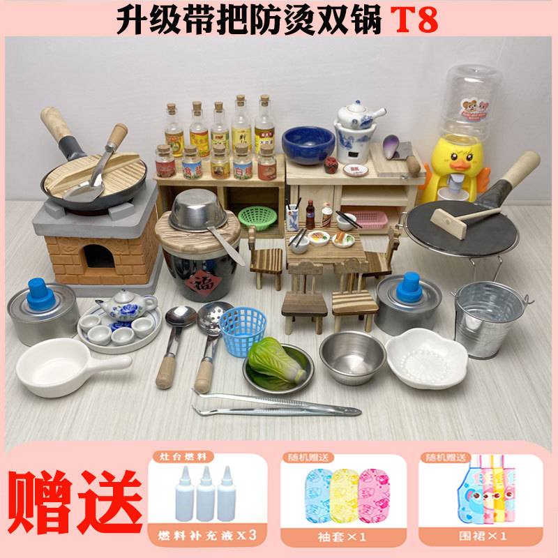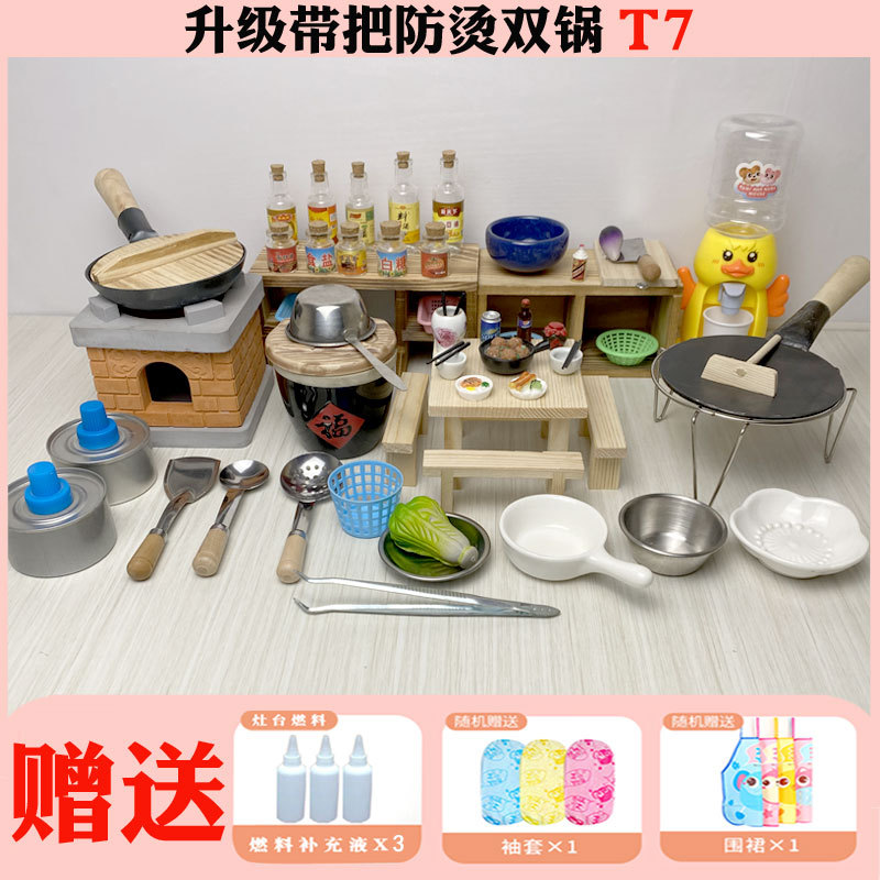 미니 간이 주방 리얼 버전은 먹을 수 있습니다 네트 레드 미니어처 작은 집 농원 어린이 스토브 요리 리얼 요리 풀 세트