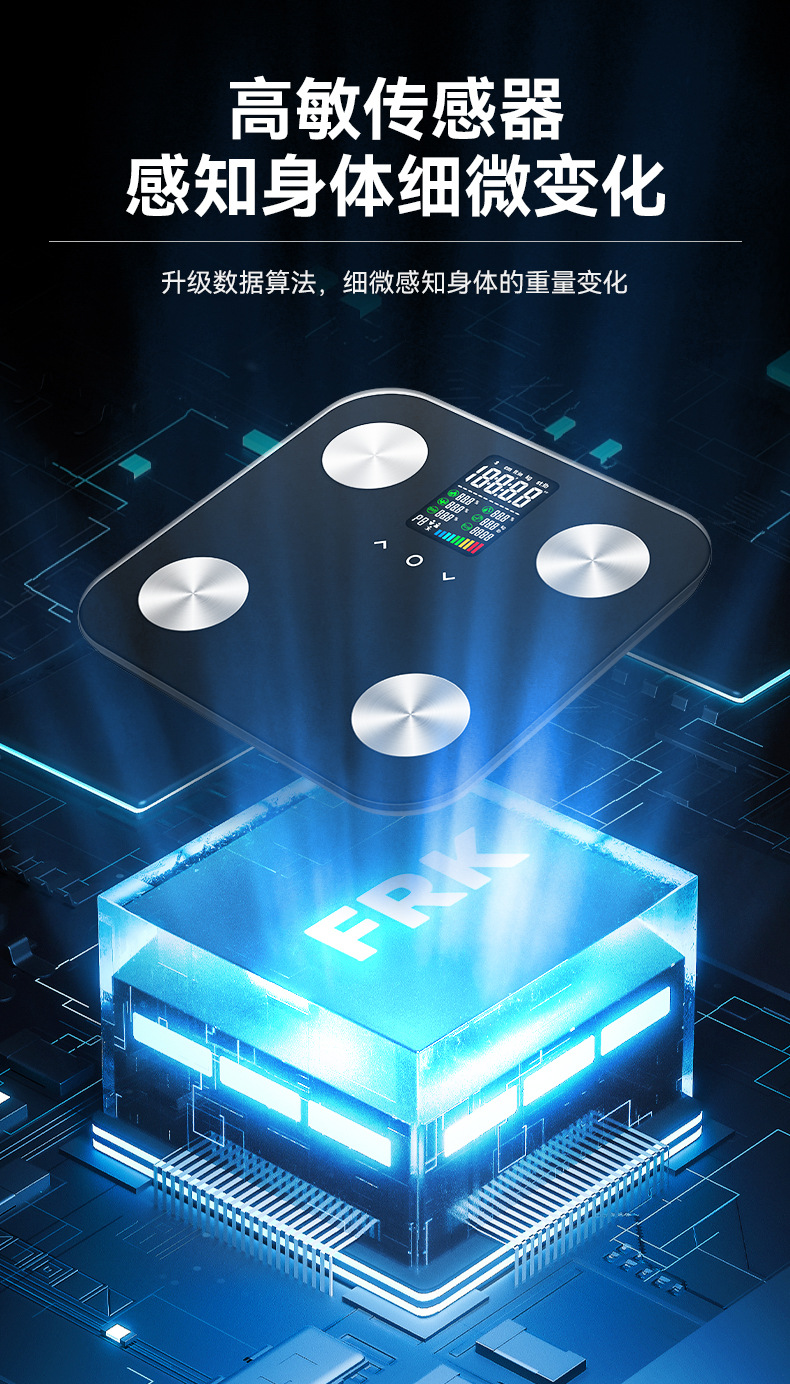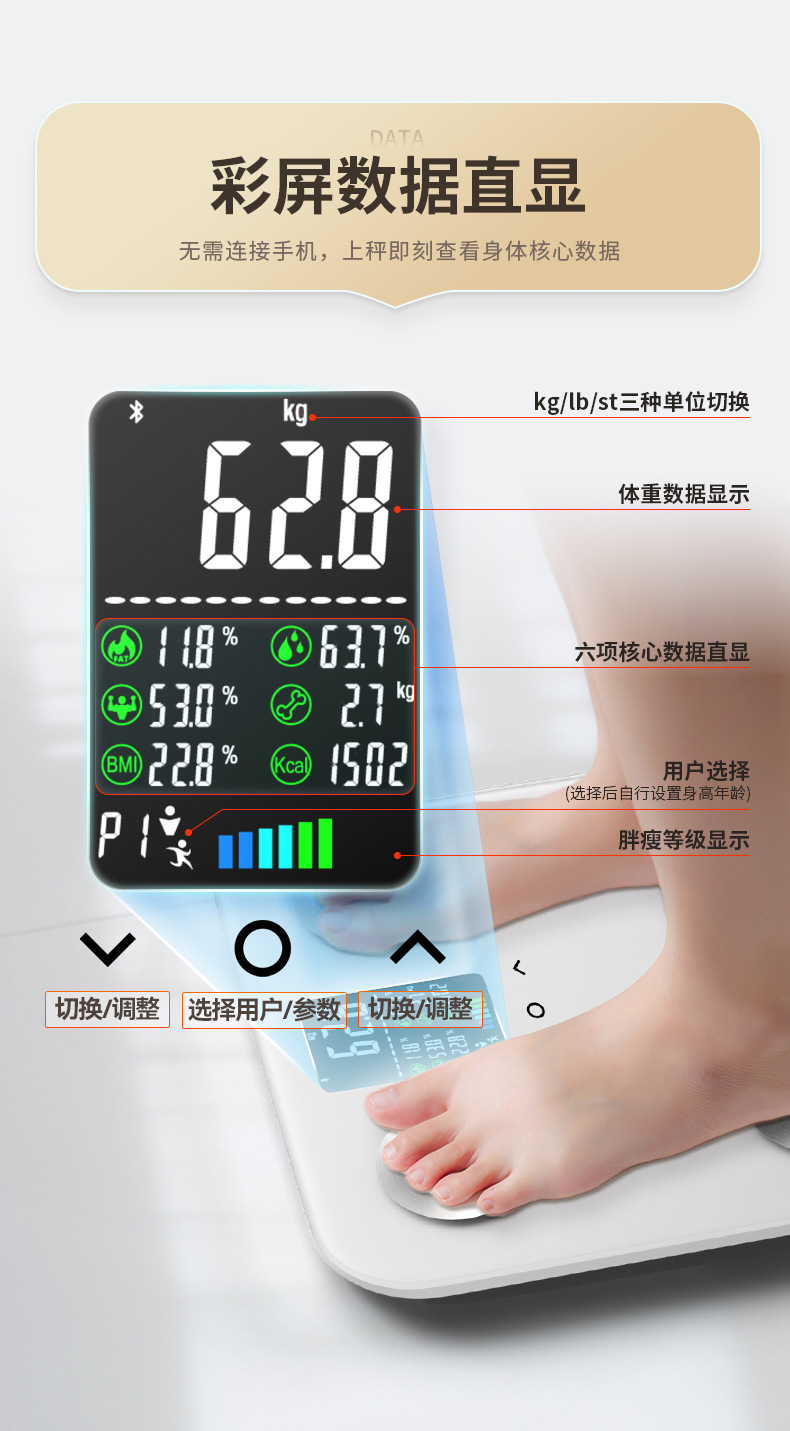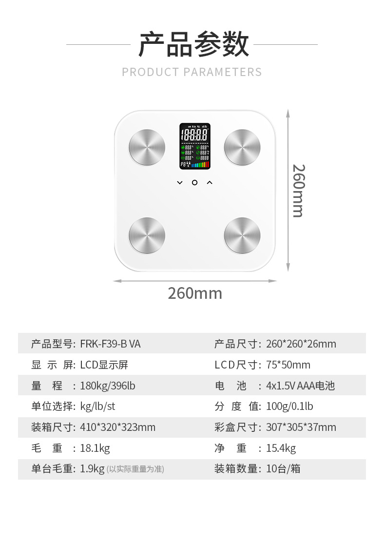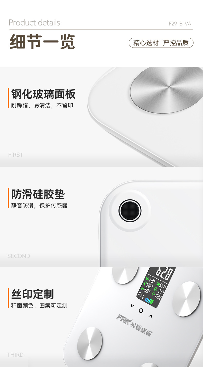 FRK 대외 무역 VA 컬러 스크린 체지방 측정기 가정용 전자 체중계 APP Bluetooth 스마트 체지방 측정기 공장스토어 가기