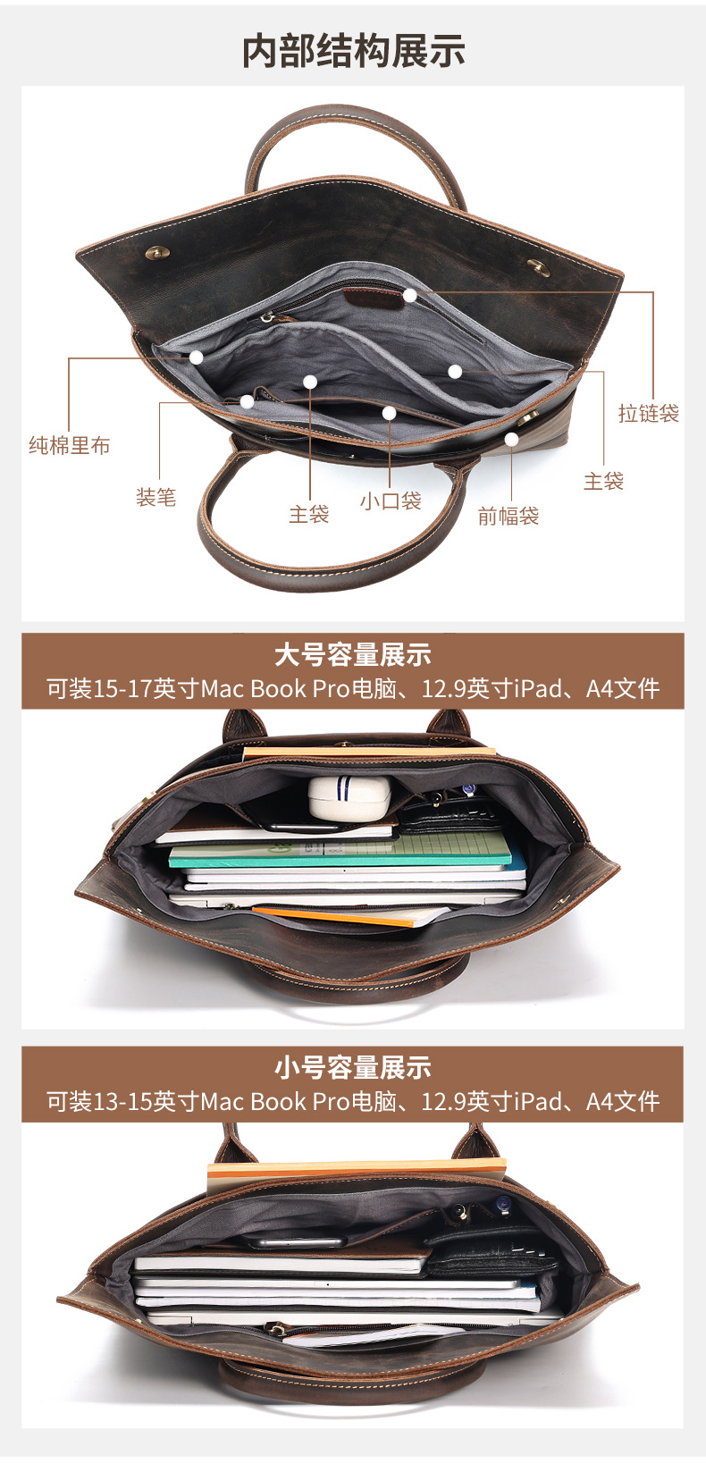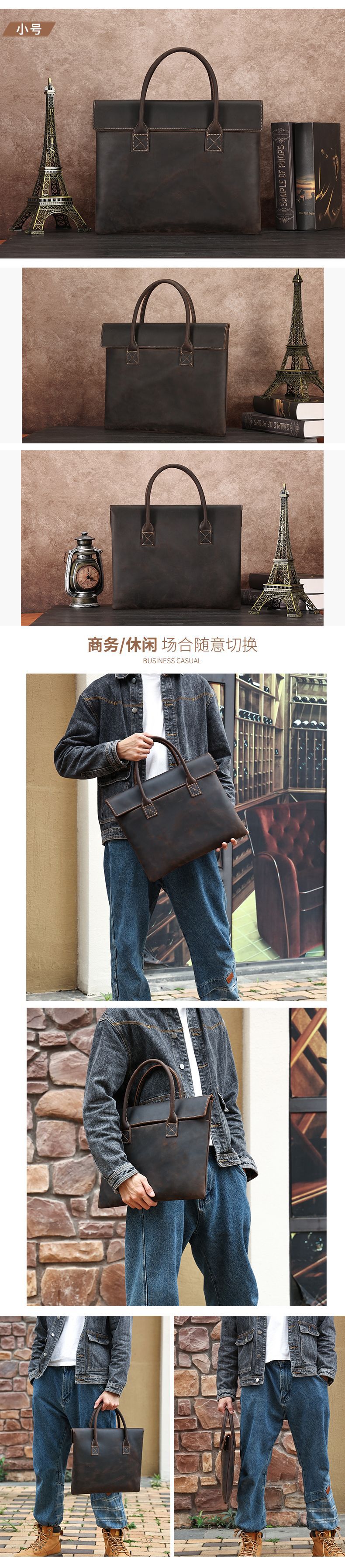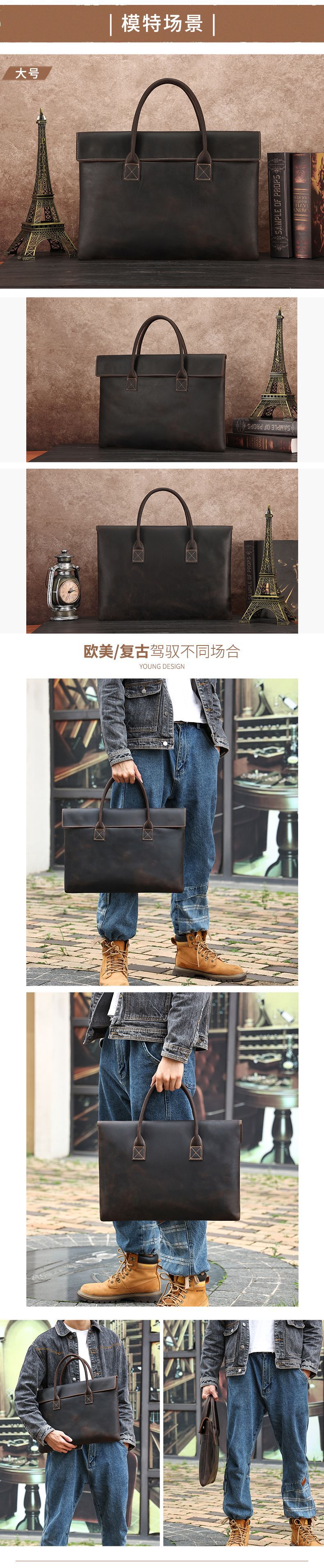 천연가죽 레트로 비즈니스 핸드백, 출장용 경량 컴퓨터 가방, 크레이지 호스 가죽 고급 가죽 가방, 남성용 서류 가방스토어 가기