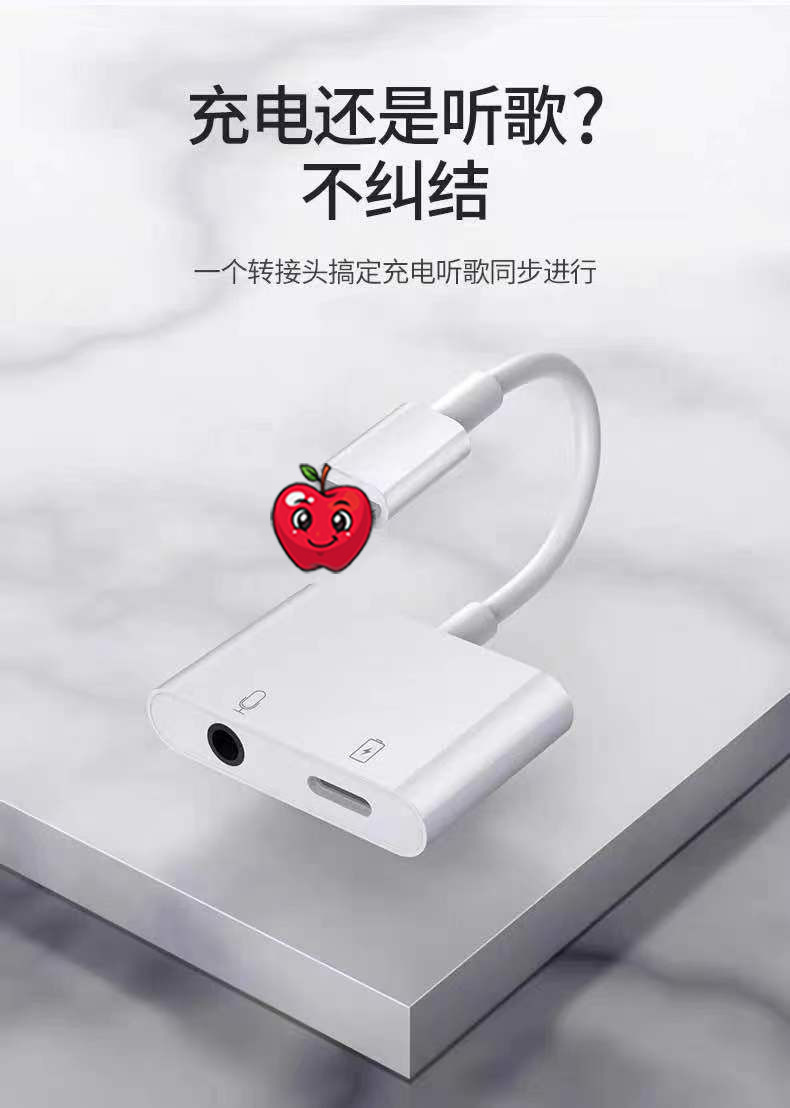 IPhone 헤드셋 어댑터 번개에 적합 3.5mm 노래 청취 전화 2-in -1 어댑터 라이브 방송스토어 가기
