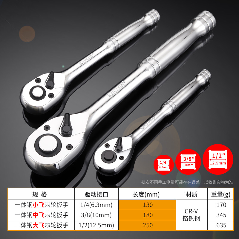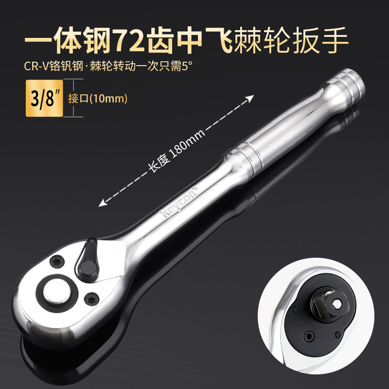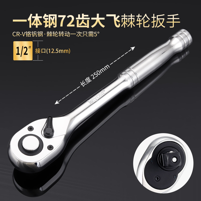 Keycon 진카이 통합 스틸 핸들 72 톱니 래칫 렌치 1/2 빅 플라이 3/8 미디엄 플라이 1/4 소형 플라이 퀵 렌치