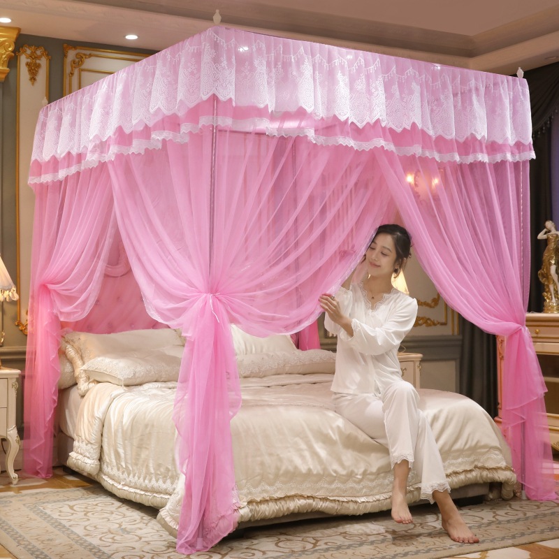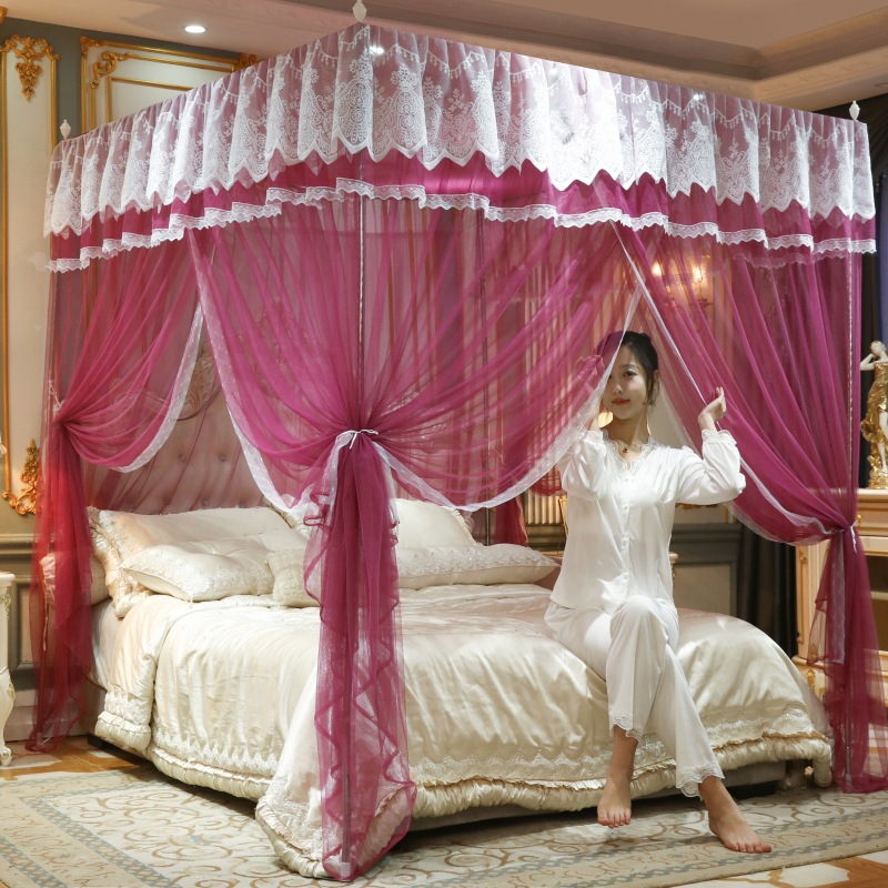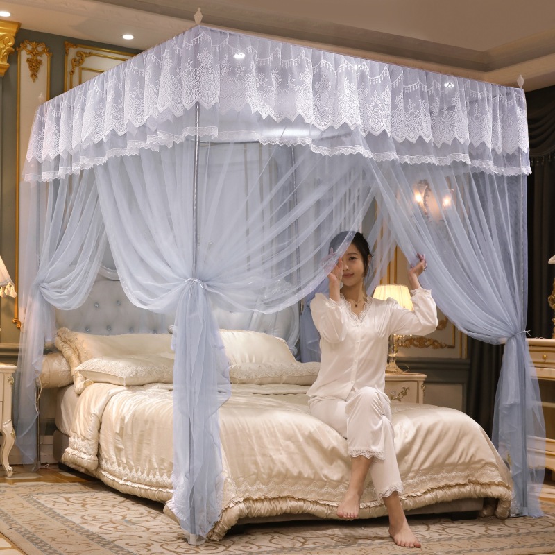 궁전 모기장 홈 2022 새로운 플로어 스탠딩 침대 커튼 3 도어 공주 스타일 레이스 암호화 원사 방진스토어 가기