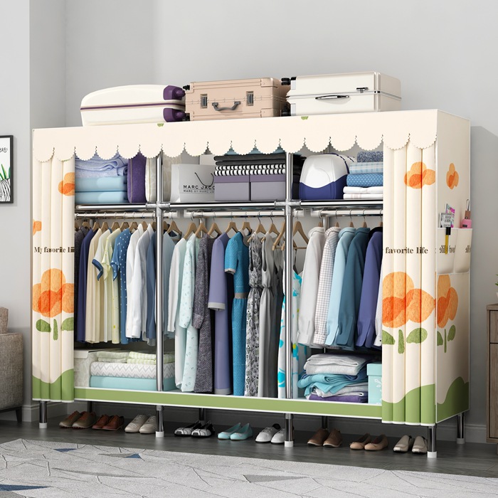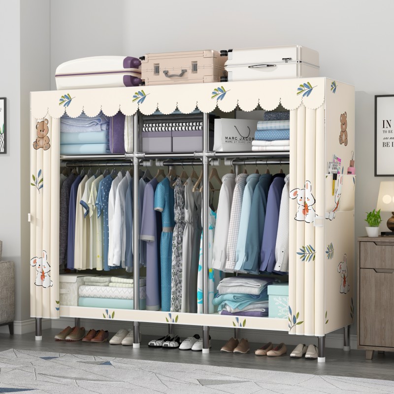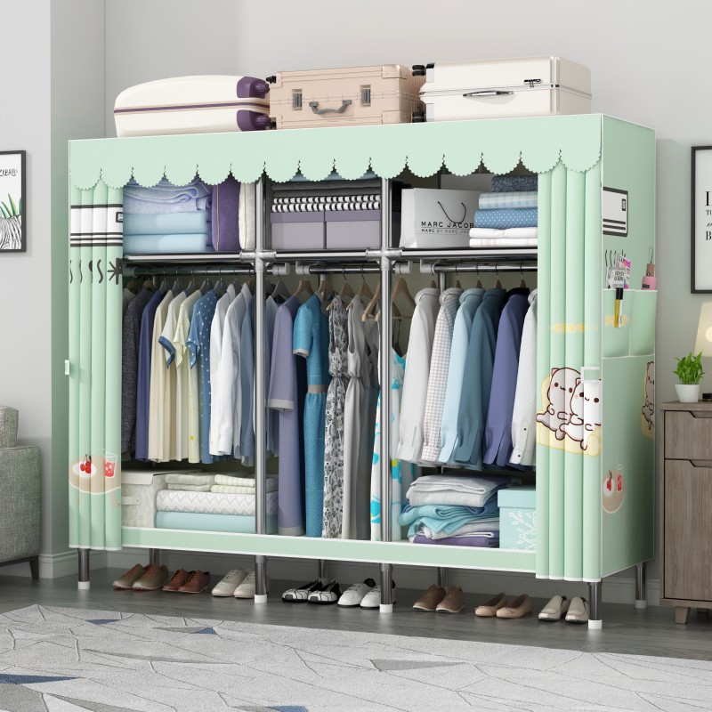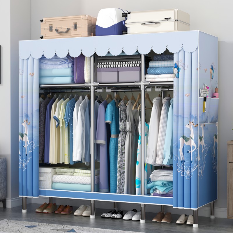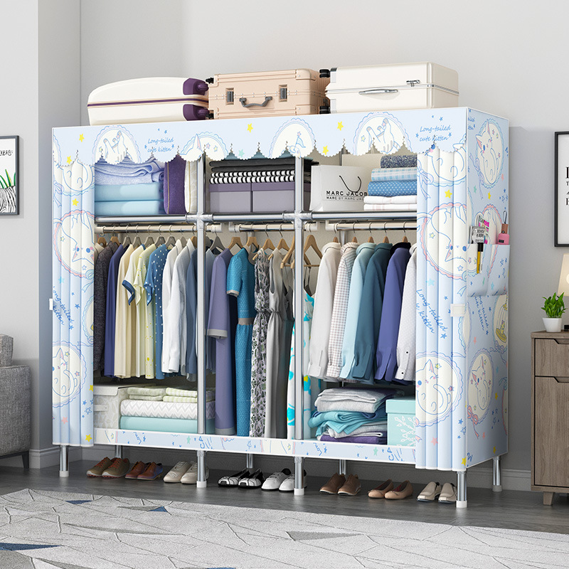 간편한 천 옷장 가정용 침실 합금 연결 옷장 강철 파이프 강화 경제형 조립식 수납 옷장스토어 가기