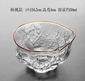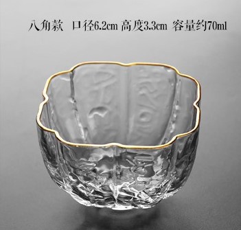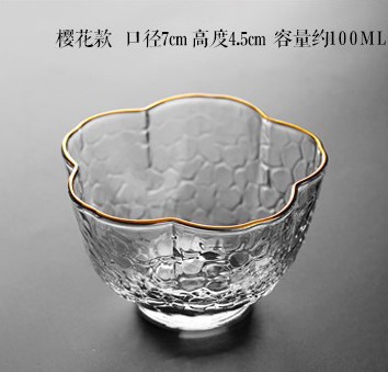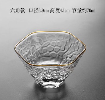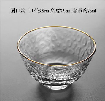 일본식 손으로 만든 유리 망치 패턴 작은 컵 차 컵 차 냄새 유리 스몰 사이즈 골드 페인팅 다도 쿵푸 컵