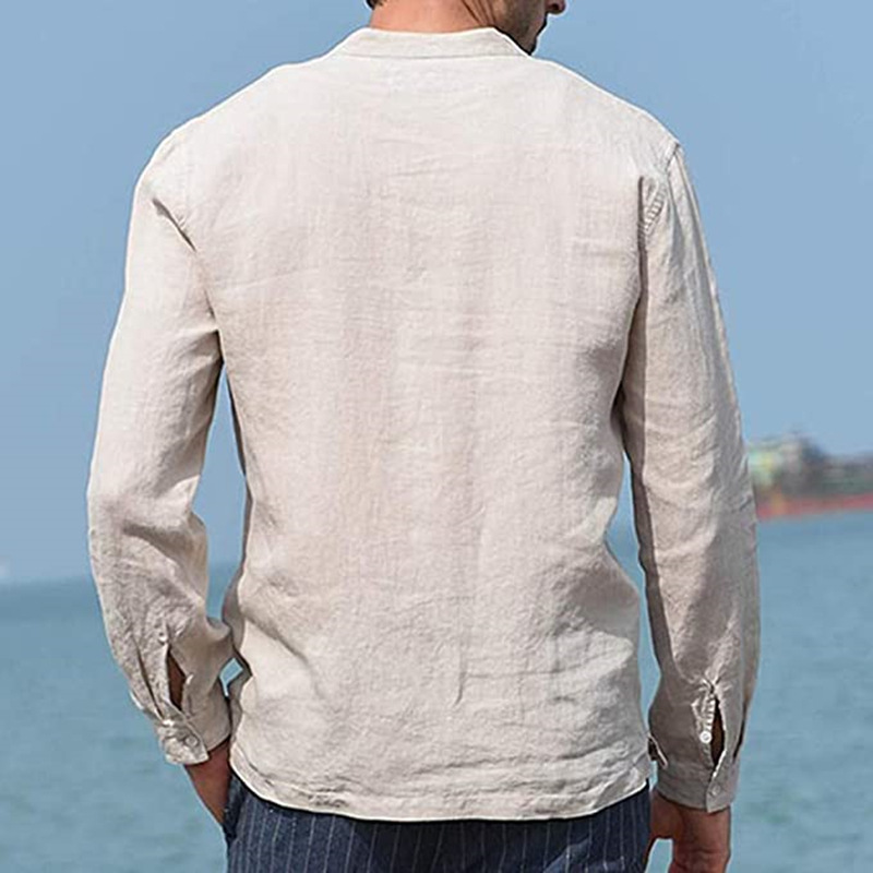 재고 독립 역 아마존 크로스 국경 대외 무역 새로운 남자의 면 린넨 캐주얼 긴 소매 셔츠 단색 스탠드 칼라 셔츠스토어 가기