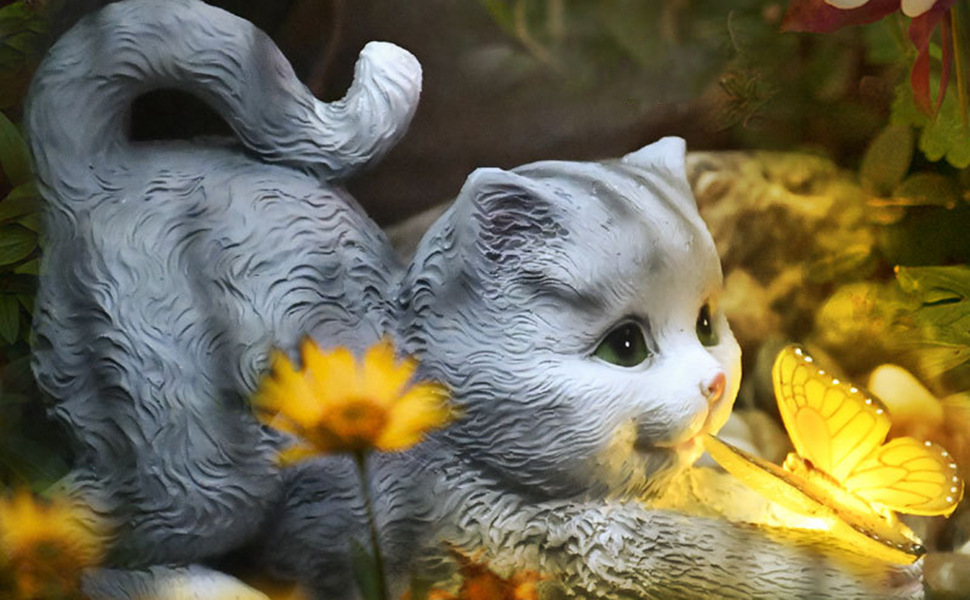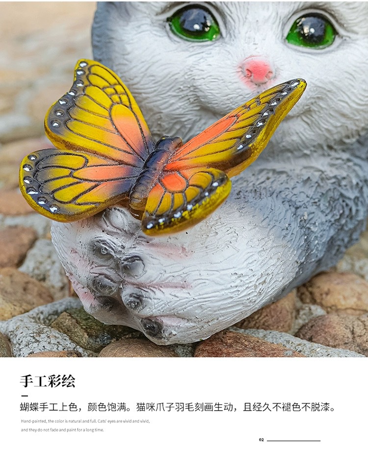 태양광 수지등 야외 수지 공예품 정원 조각상 고양이 나비 장식 정원등 정원 장식품