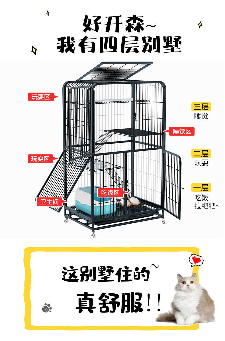 고양이 케이지 여유 공간 변기 고양이 애완동물 고양이 하우스 공장 포함 빌라 대형 홈 케이지 3 층 대형