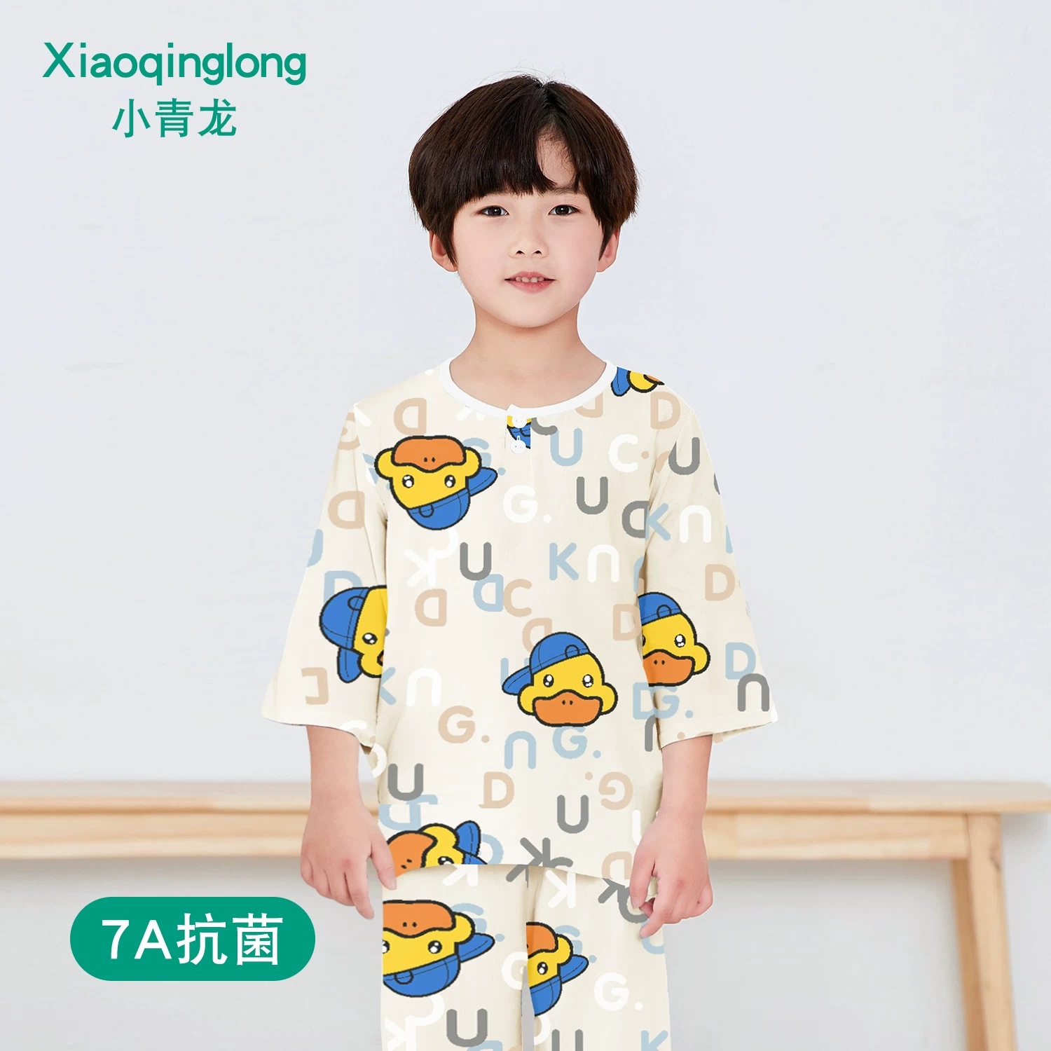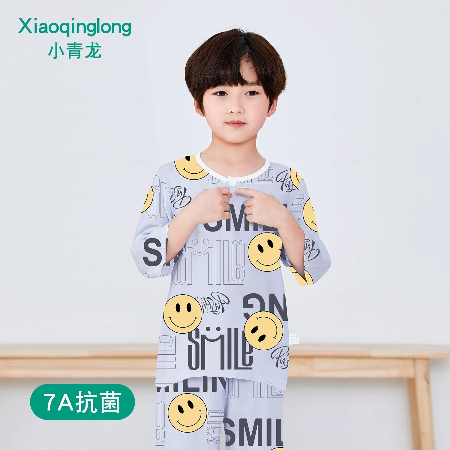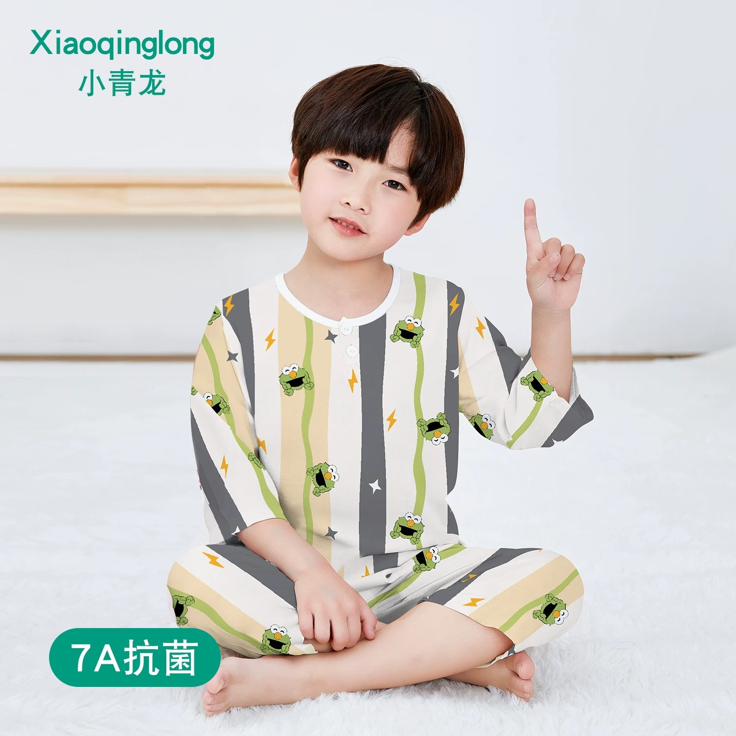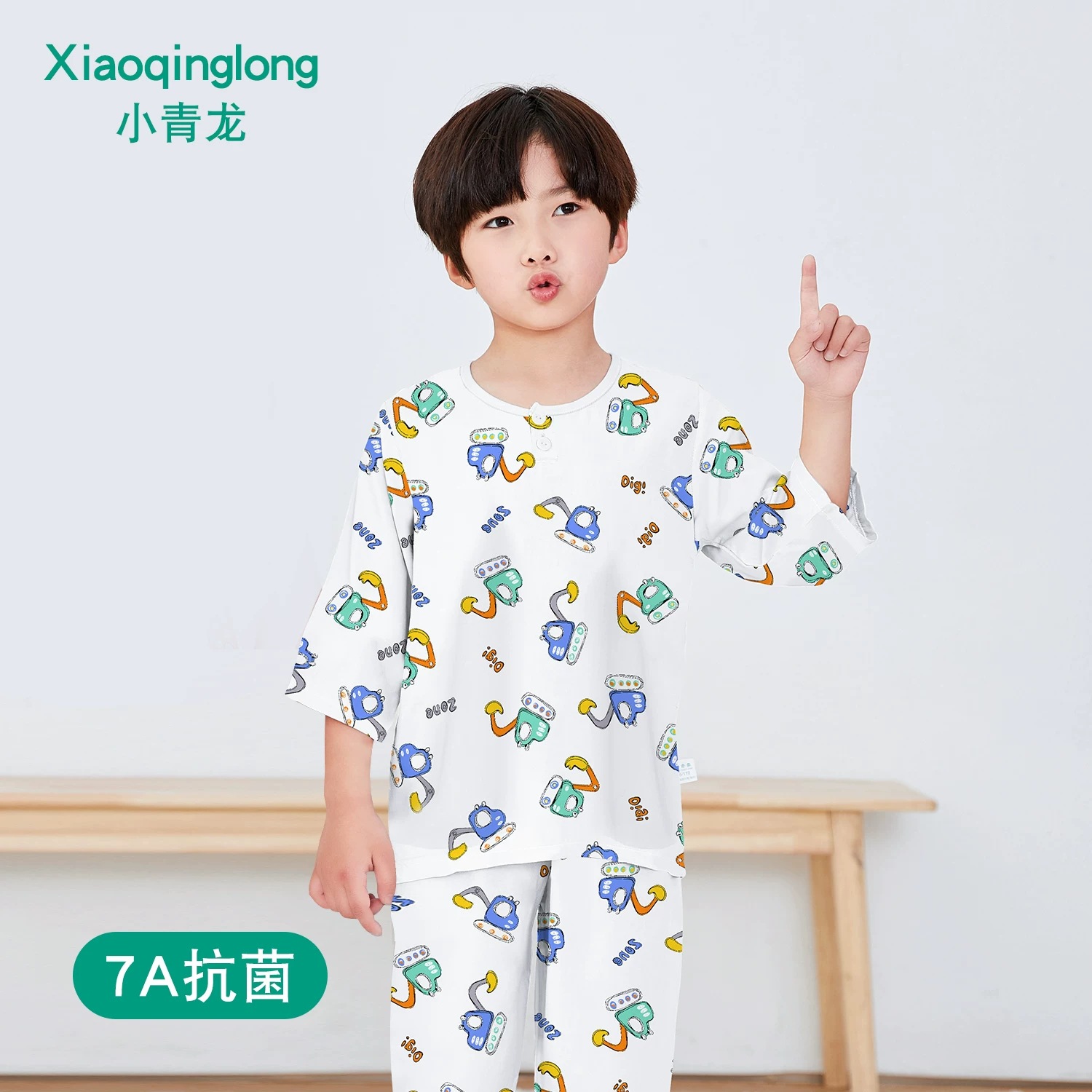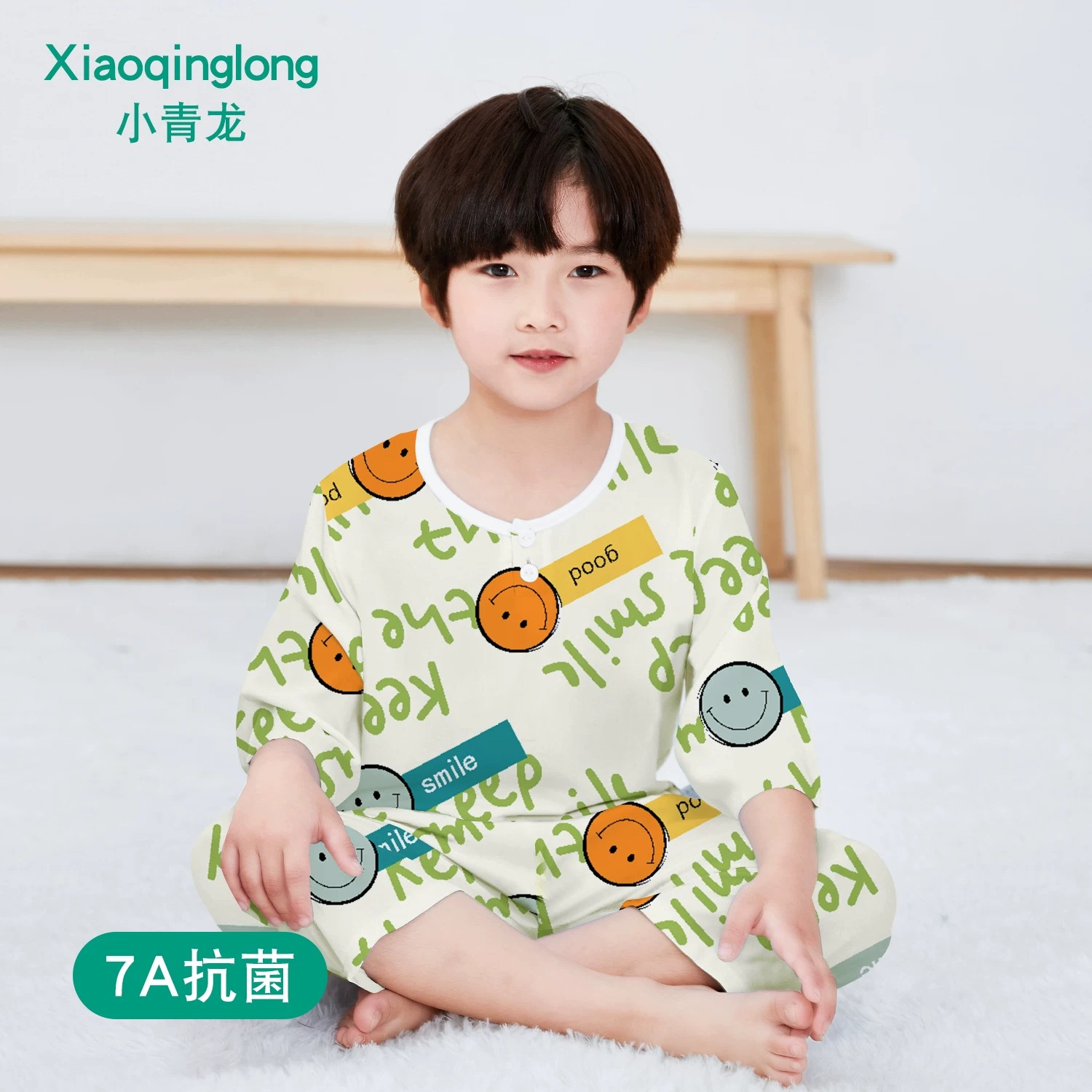 샤오칭롱 아동용 면 실크 잠옷, 남아 여아 유아용 얇은 인조면 홈웨어, 정전기 방지 아동용스토어 가기