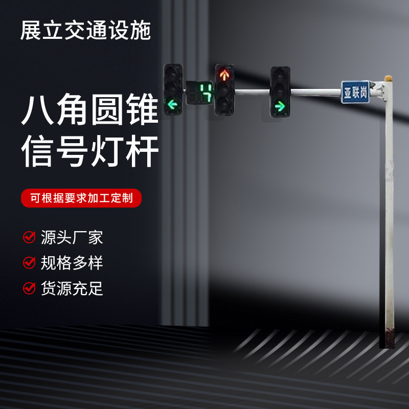가공된 등변 팔각형 캔틸레버 신호등 기둥 도로 교차로 신호등 기둥 단일 암 LED 교통 신호등 기둥 LED