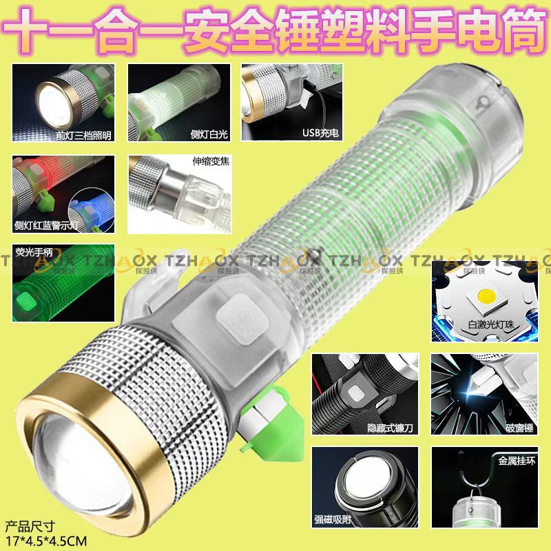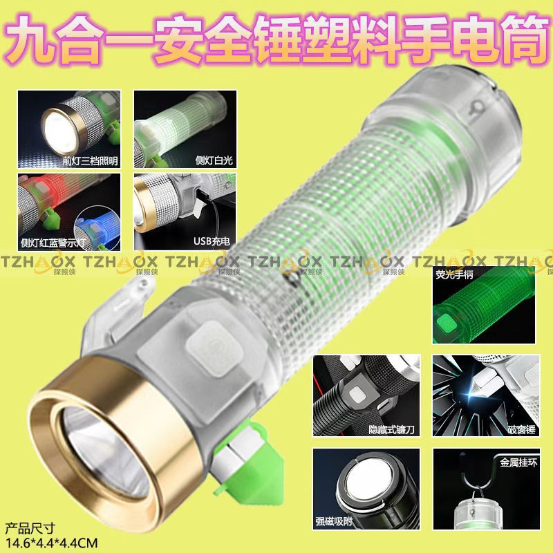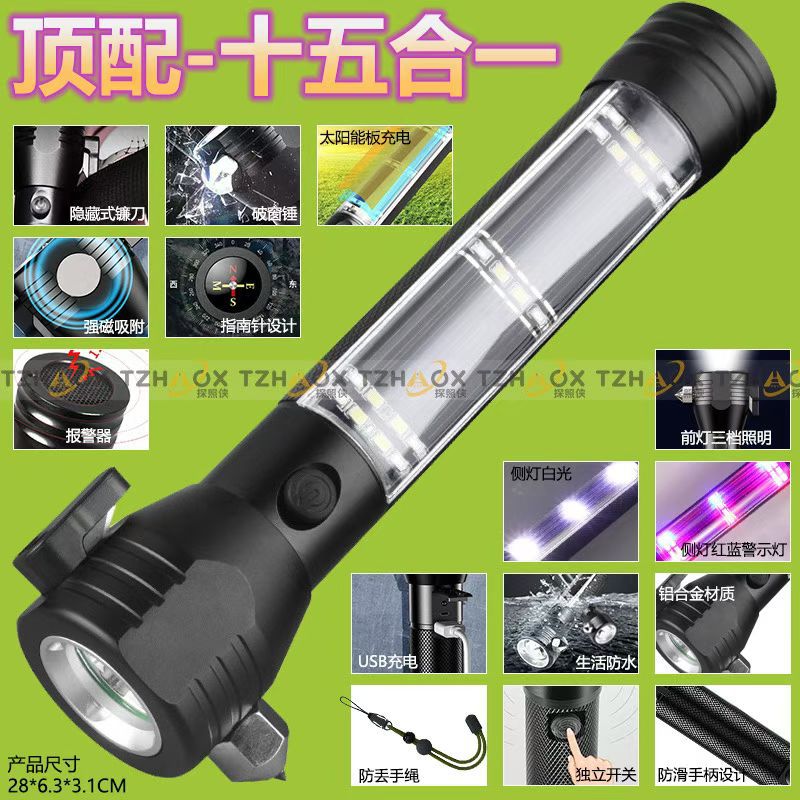 비상 탈출 다기능 차량용 손전등 LED 태양광 야외 비상등 COB 강광 창문 파괴 안전망치스토어 가기