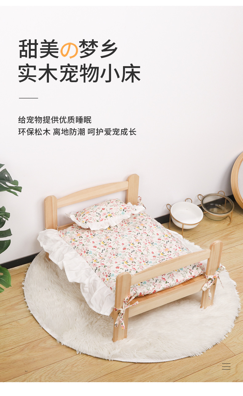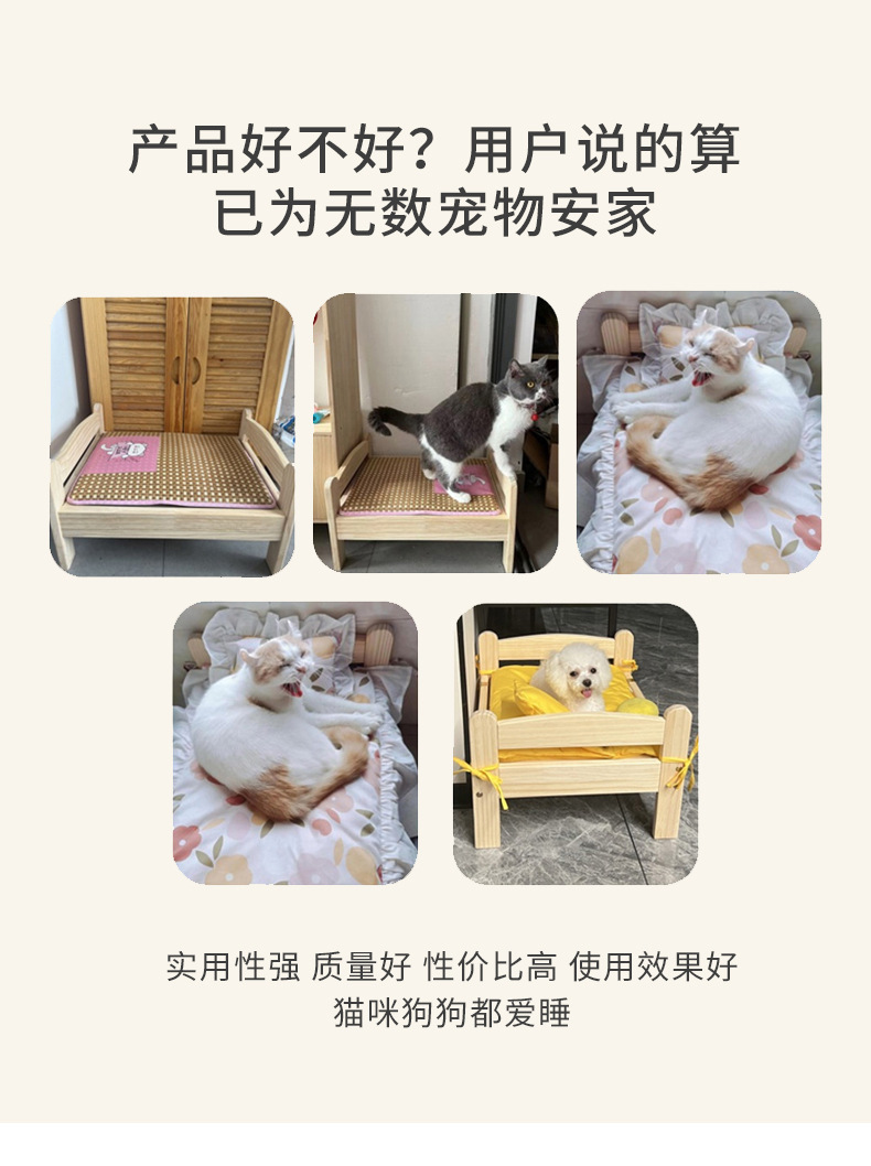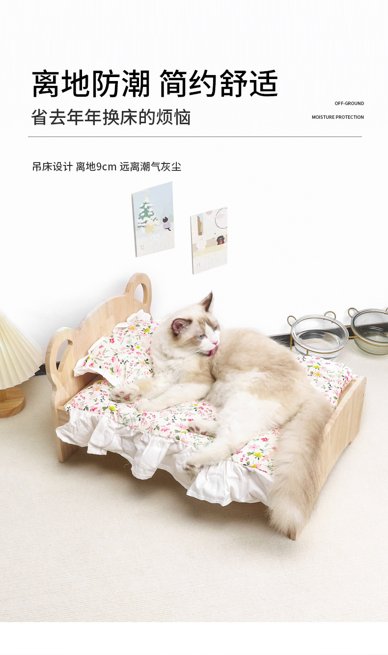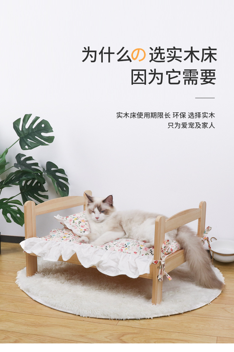 원목 애완동물 침대, 고양이 둥지, 강아지 침대, 여름과 겨울에 적합한 범용 목재 분리 및 세척 가능한 공주 침대, 통기성 디자인의 고양이 침대스토어 가기