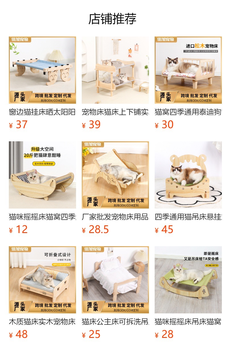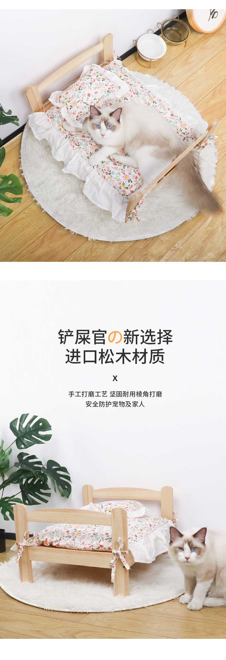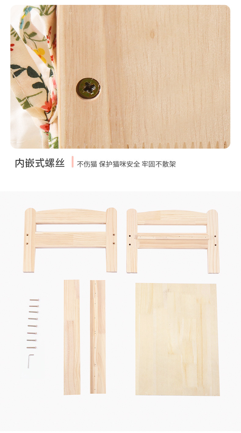 원목 애완동물 침대, 고양이 둥지, 강아지 침대, 여름과 겨울에 적합한 범용 목재 분리 및 세척 가능한 공주 침대, 통기성 디자인의 고양이 침대스토어 가기