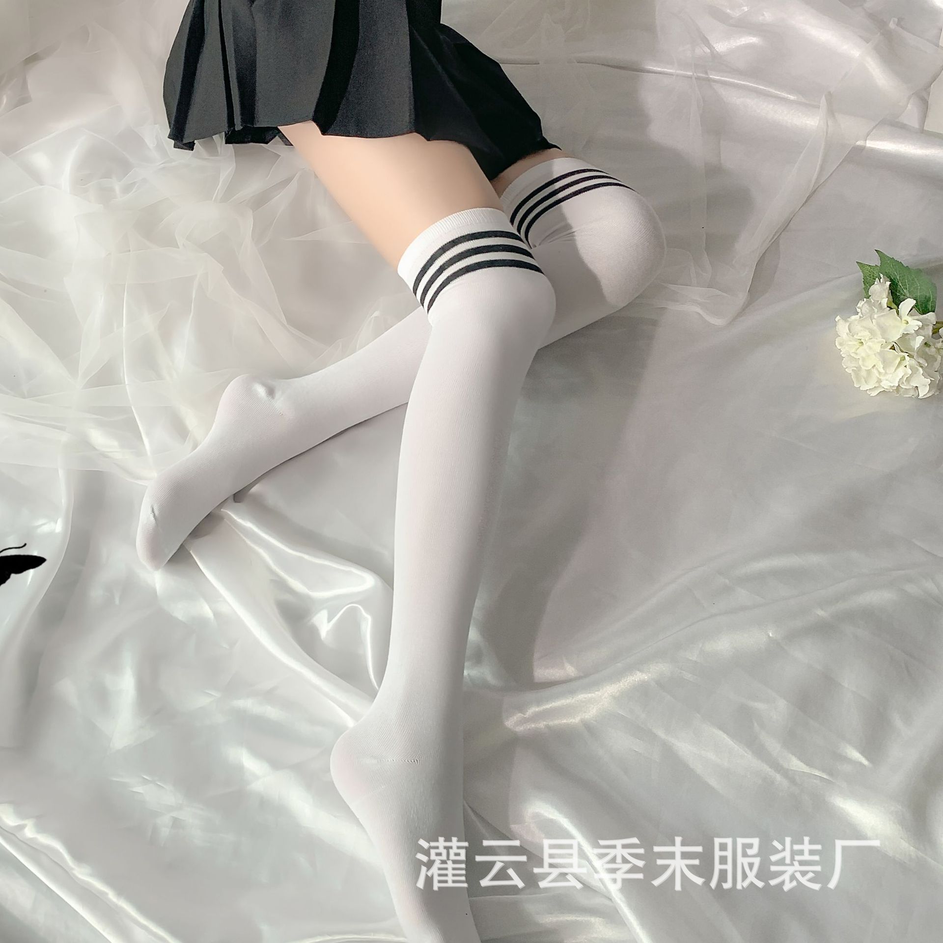 시즌 종료 대학 스타일 면 두꺼운 흑백 줄무늬 스타킹 3 바 무릎 높이 스타킹 학생 양말 제조 업체스토어 가기