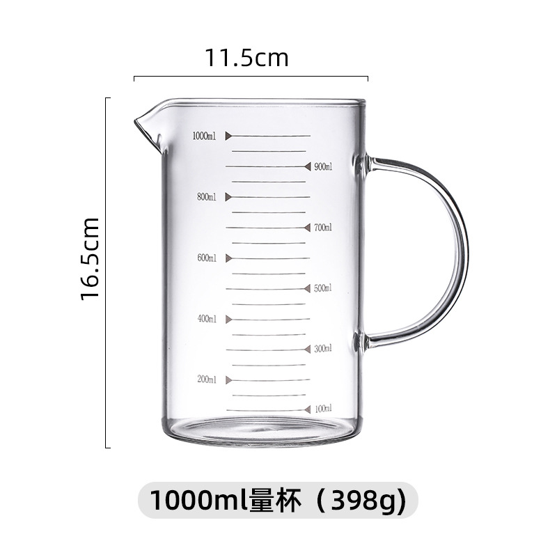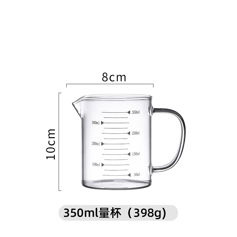 손잡이가 있는 내열 유리 저울 측정 컵 베이킹 밀크 컵 고온 내성 투명 측정 컵은 전자 레인지에서 가열 할 수 있습니다스토어 가기