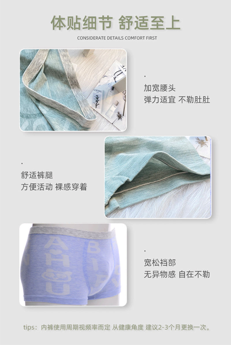 跨境本命年男士内裤青年莫代尔肥佬加大码平角裤运动宽松四角裤RMB:5.99