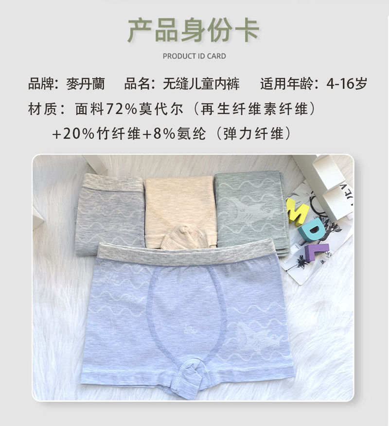 跨境直播无缝少男儿童内裤纯彩棉莫代尔小中大童男孩平角短内裤RMB:4.99