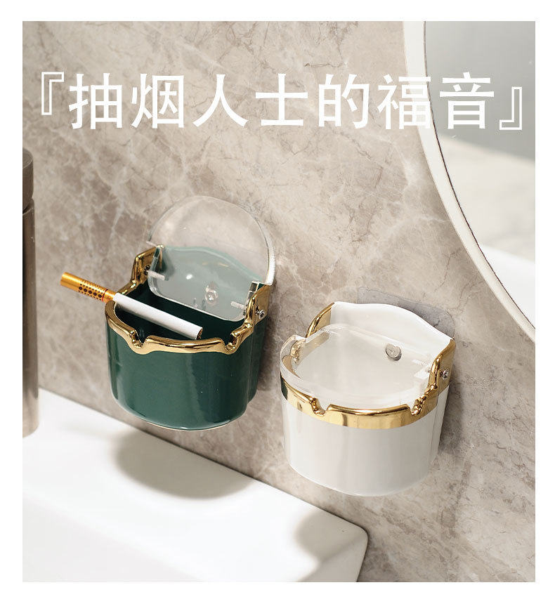 뚜껑이있는 도매 재떨이 가정용 화장실 화장실 벽걸이 형 비 펀칭 맞춤형 트렌드 세라믹 비행 방지 재 바람