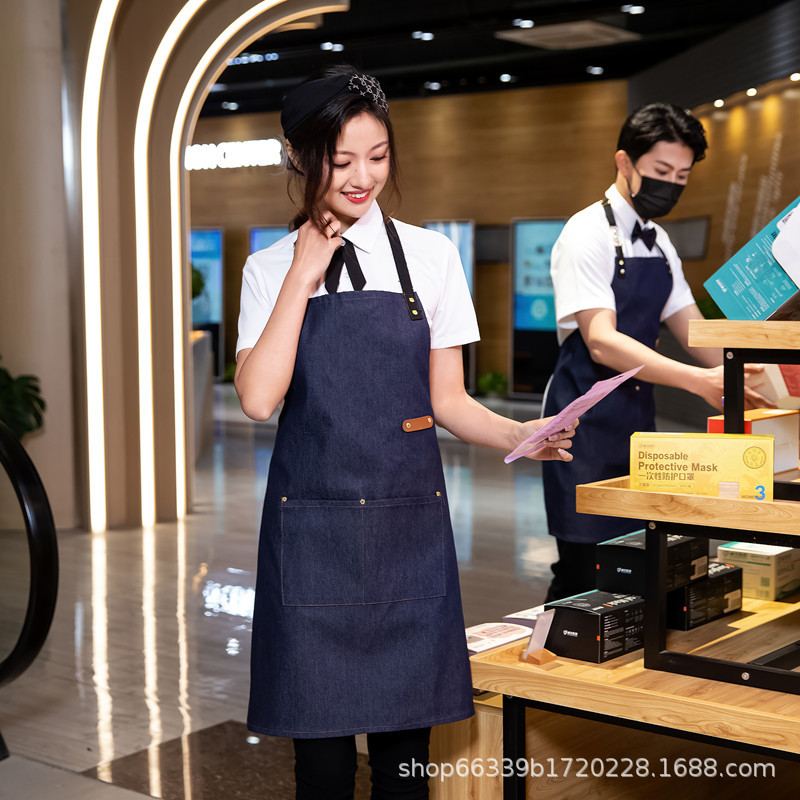 캔버스 앞치마 인쇄 로고 광고 레스토랑 커피 숍 케이크 숍 네일 숍 베이킹 바지 목 스카프 매달려