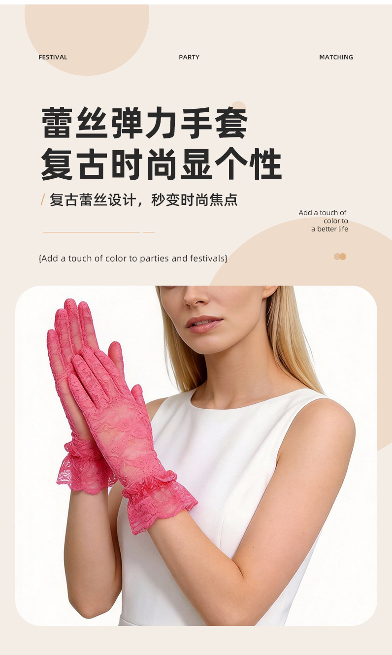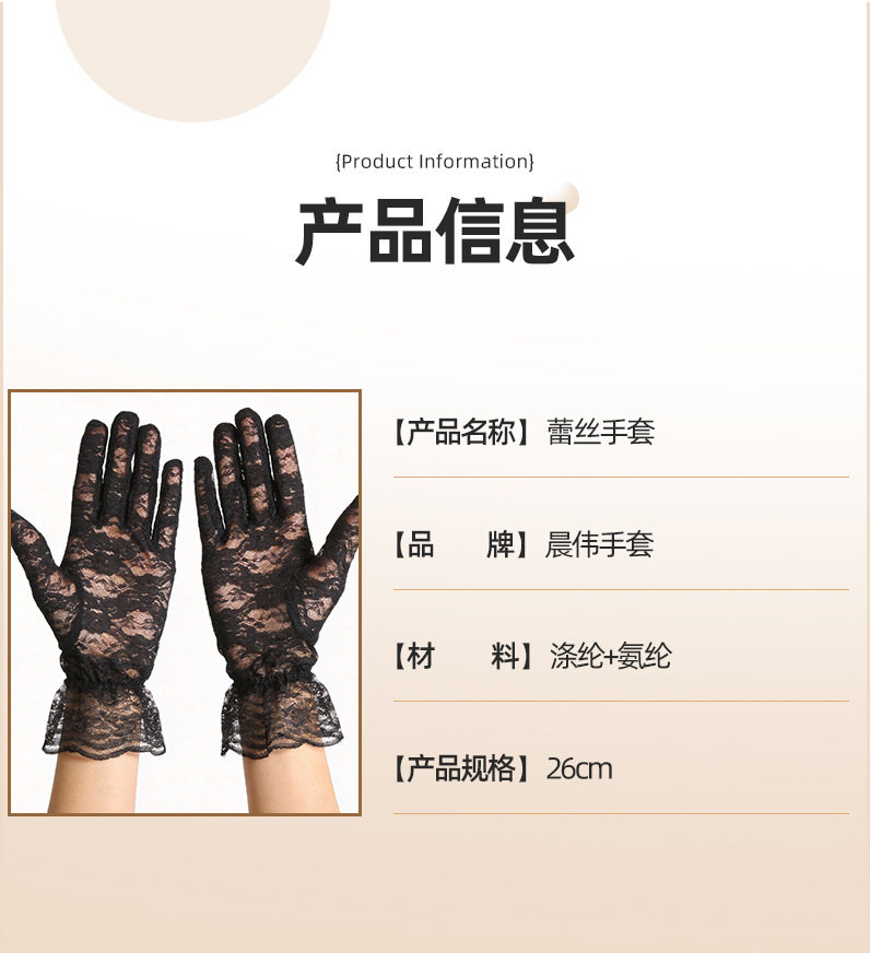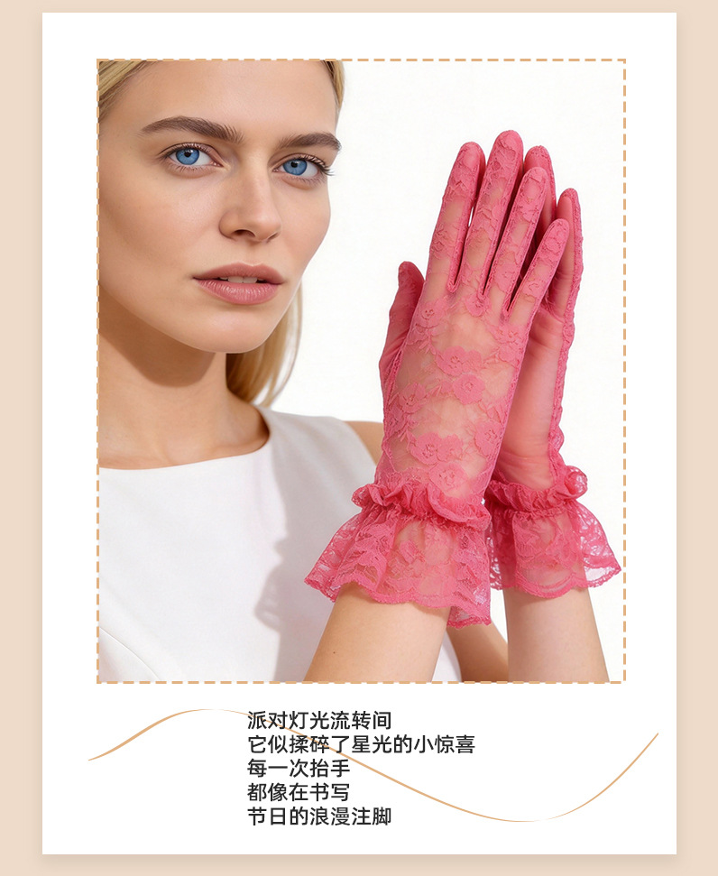 여성용 짧은 레이스 장갑, 패셔너블하고 섹시한 얇은 통기성 자외선 차단 웨딩 장갑, 해외 인기 상품