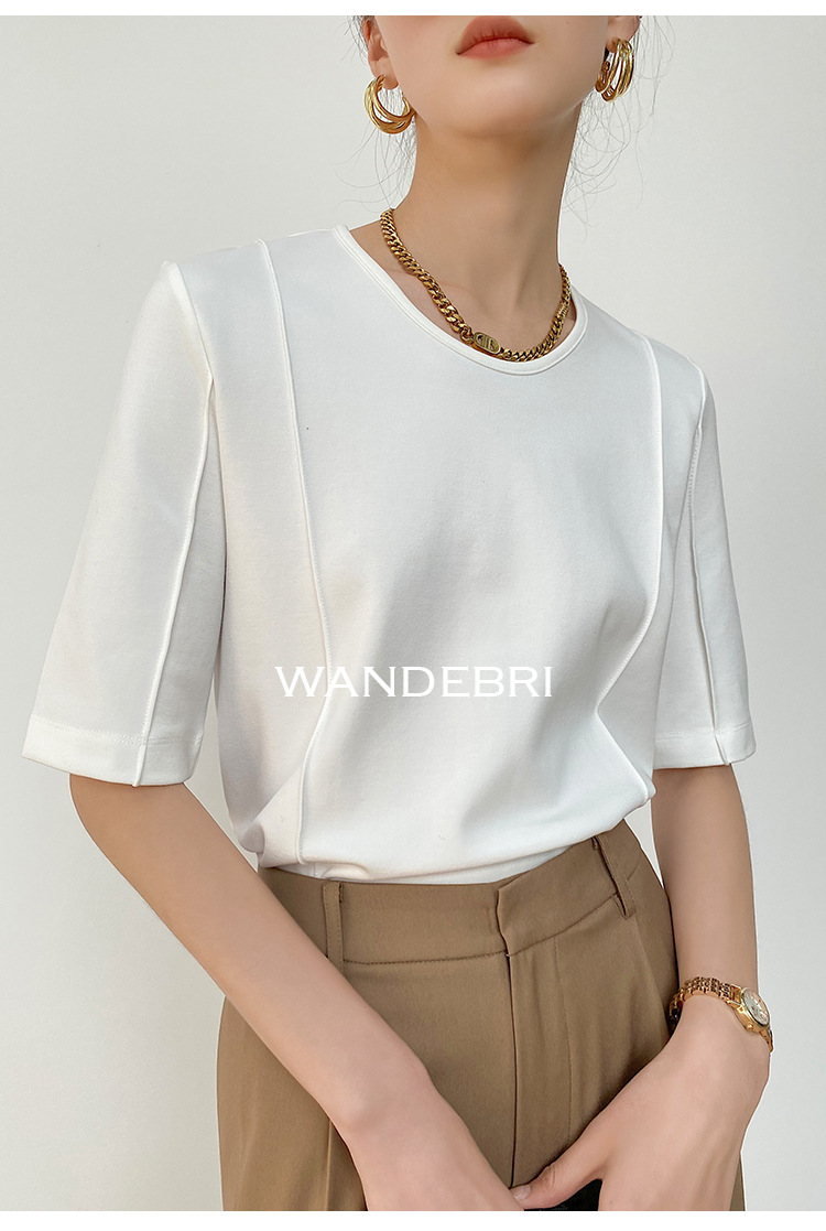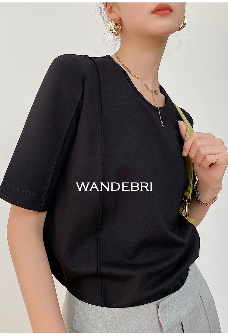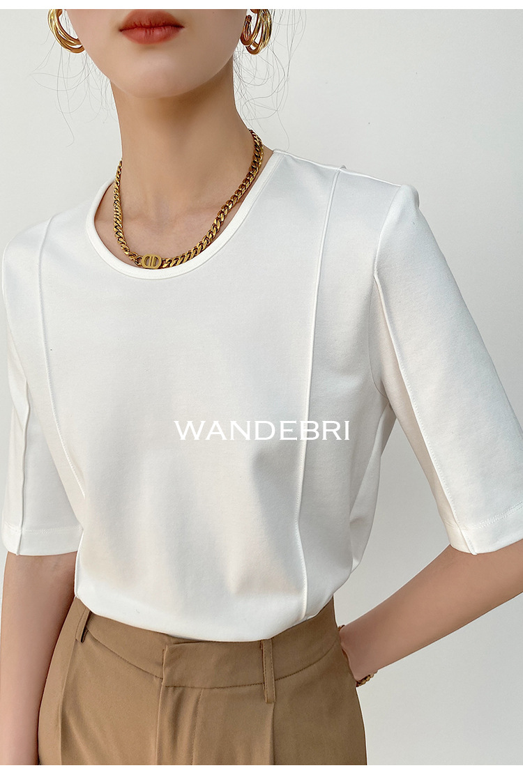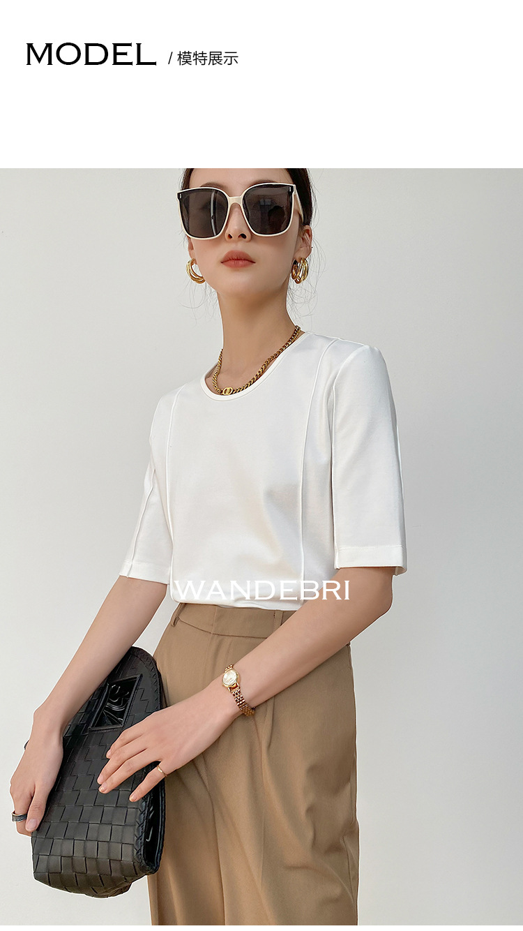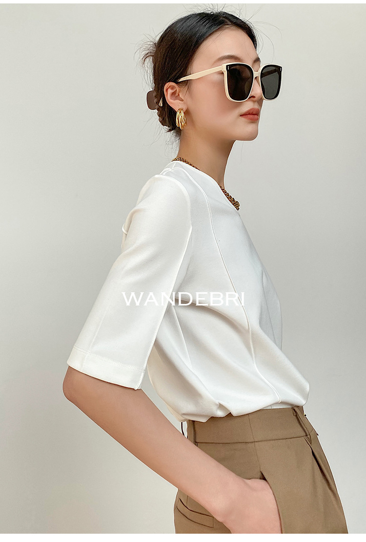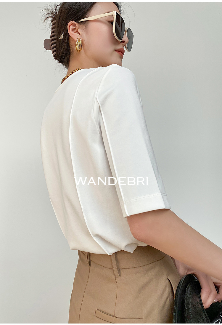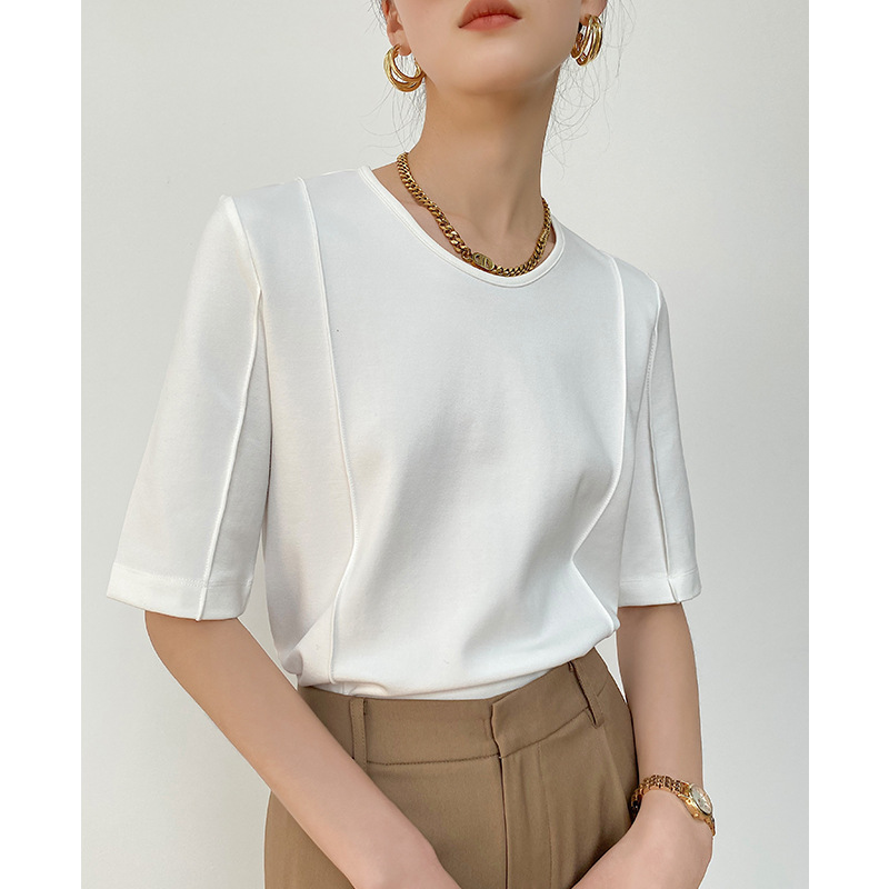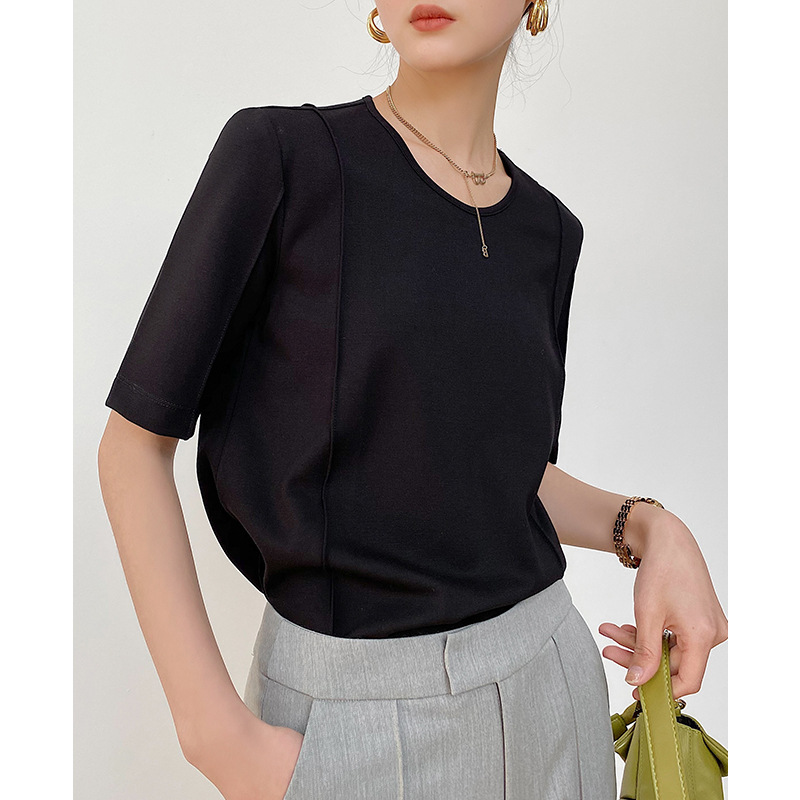 봄여름 티셔츠 텐셀 로마 미디엄 슬리브 여성 반팔 디자인 반팔 라운드넥 탑 다림질 필요없는 5부소매스토어 가기