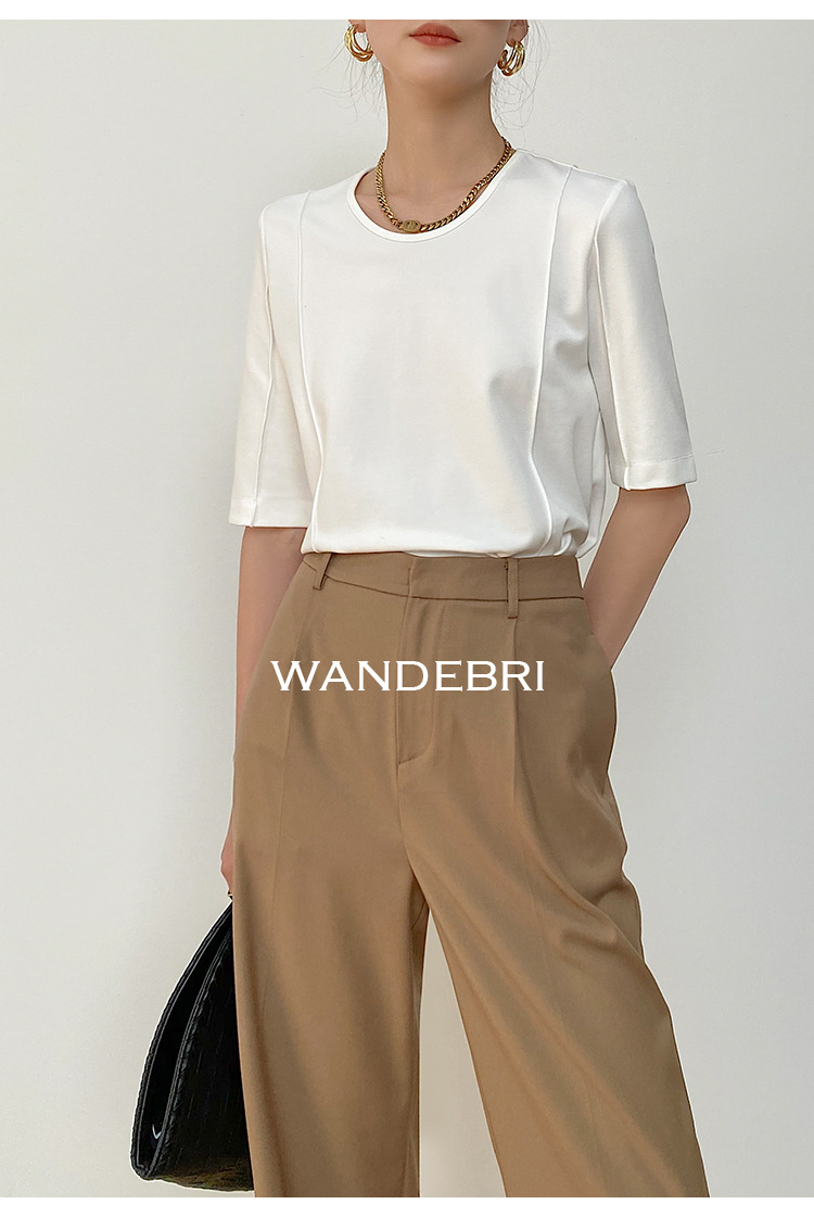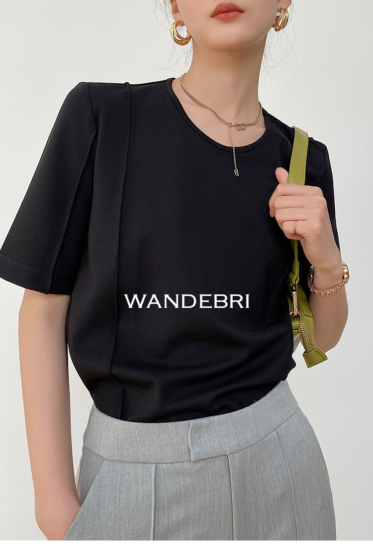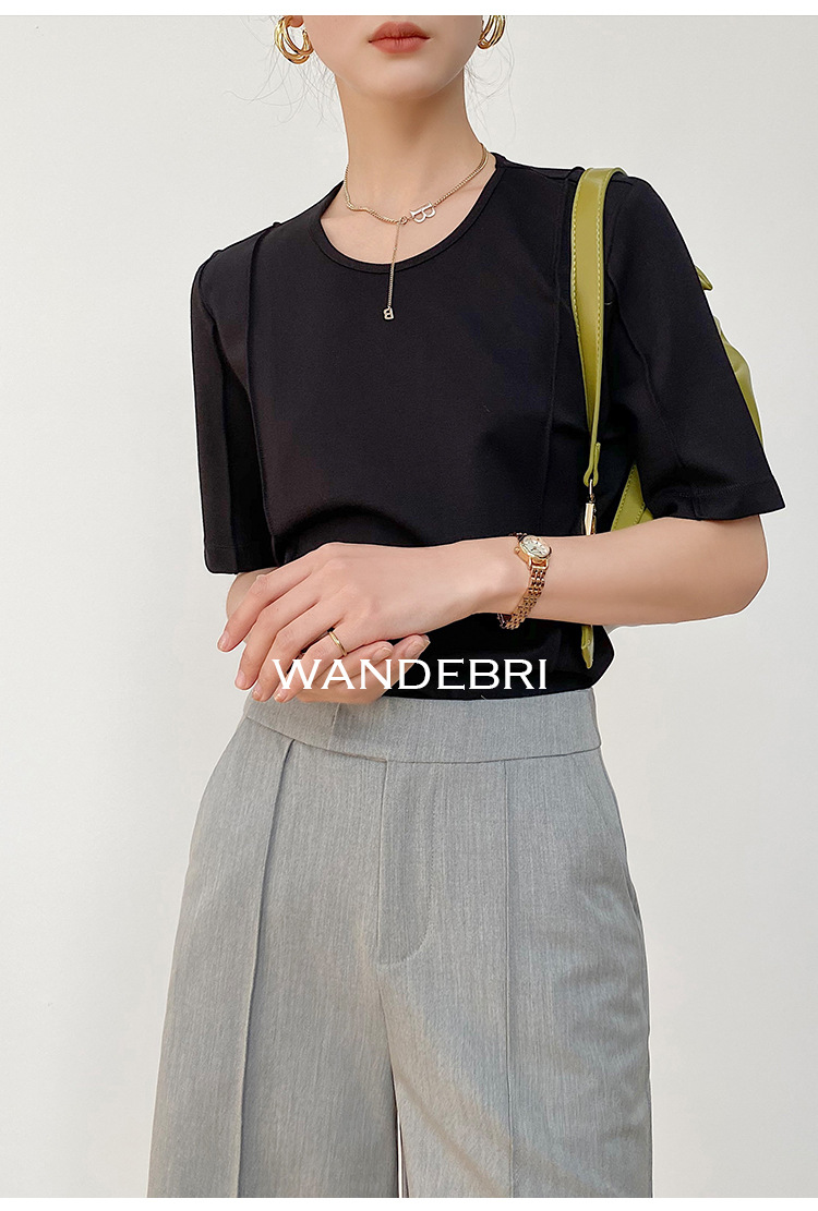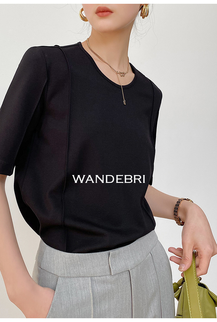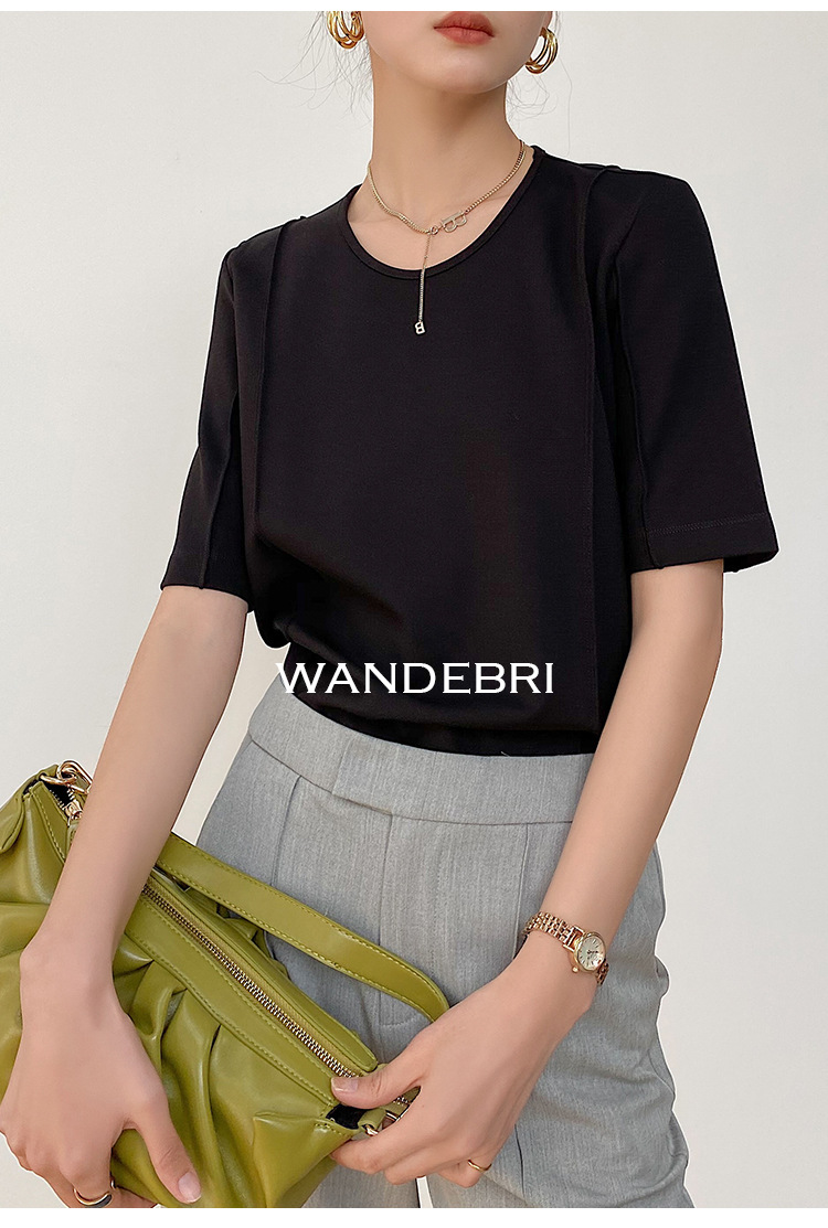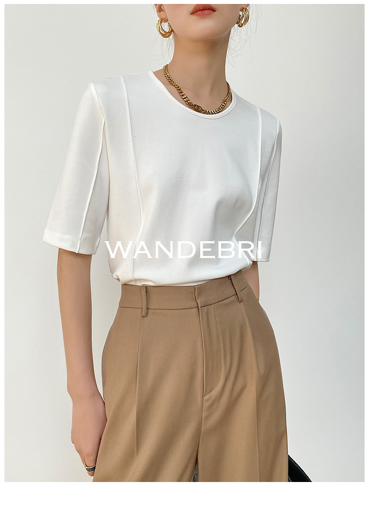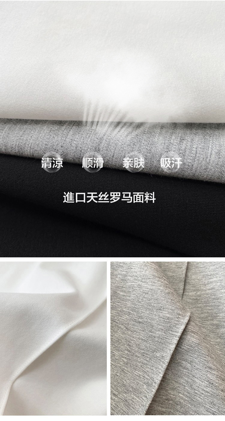 봄여름 티셔츠 텐셀 로마 미디엄 슬리브 여성 반팔 디자인 반팔 라운드넥 탑 다림질 필요없는 5부소매스토어 가기