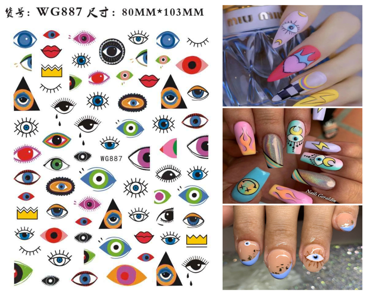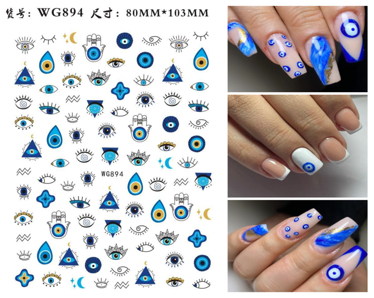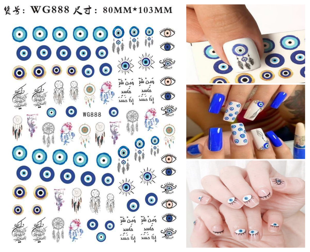 악마의 눈 네일 아트 스티커 재고 크로스 보더 전자 상거래 블루 컬러 눈 악마의 눈 네일 아트 스티커