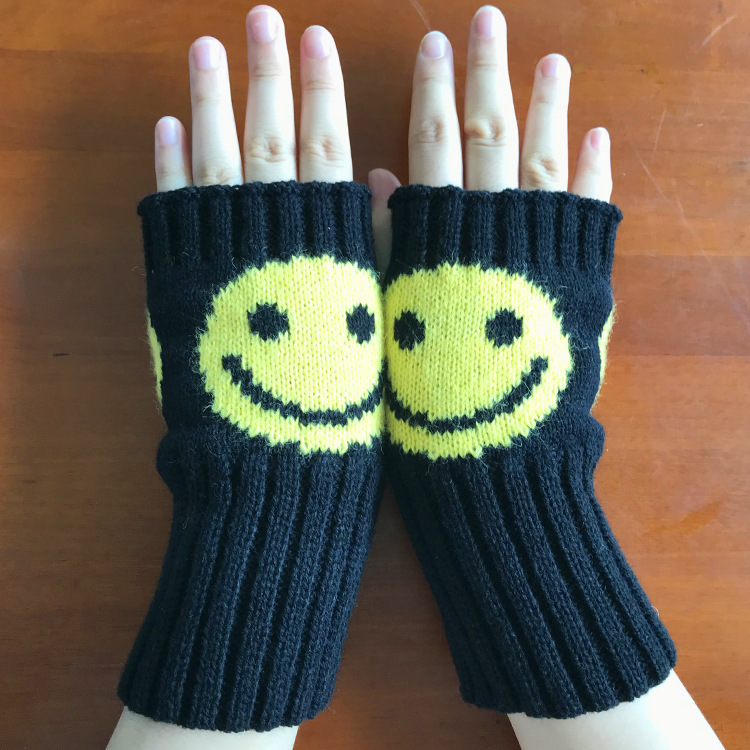 맞춤형 가공 일본 하라주쿠 니트 반 손가락 장갑 한국 웃는 얼굴 모직 여성용 장갑 맞춤형 샘플