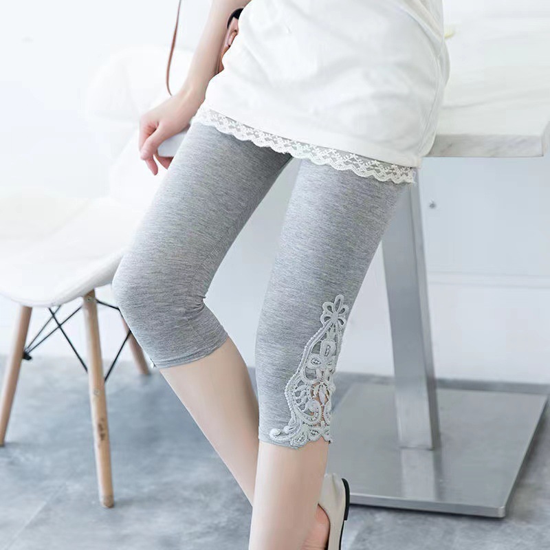 레이스 크롭 팬츠 여름 얇은 만능 레깅스 여성용 슬림핏 스트레치 슬림핏 플러스 사이즈 통기성 하의 스포츠 팬츠스토어 가기
