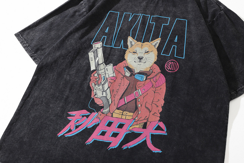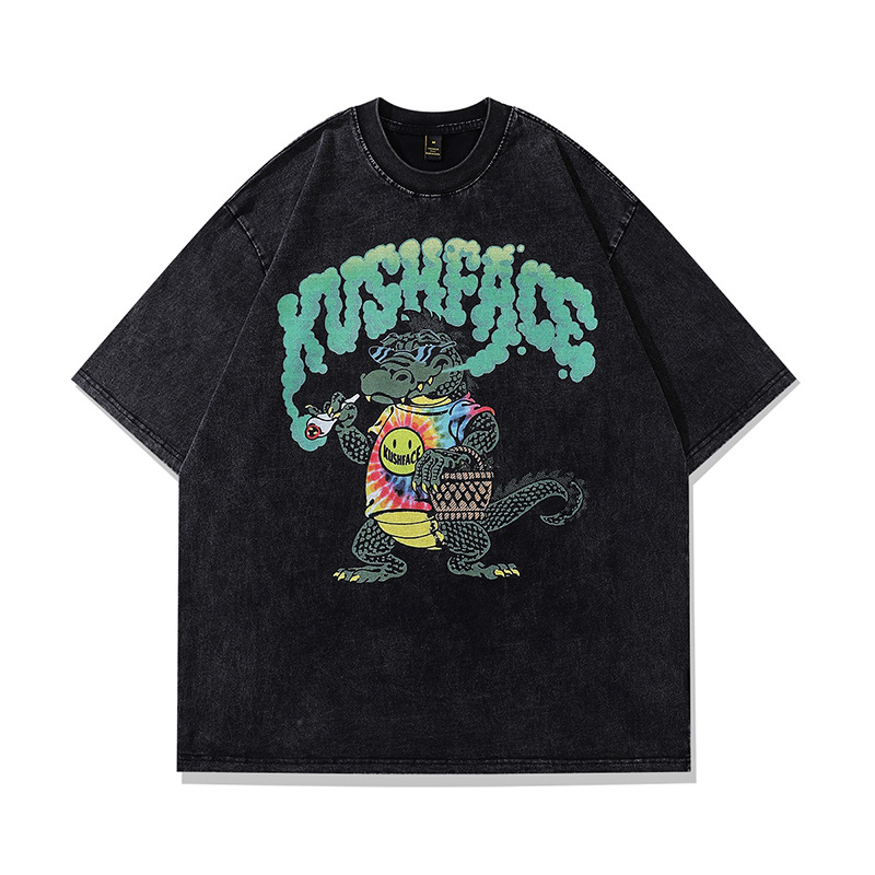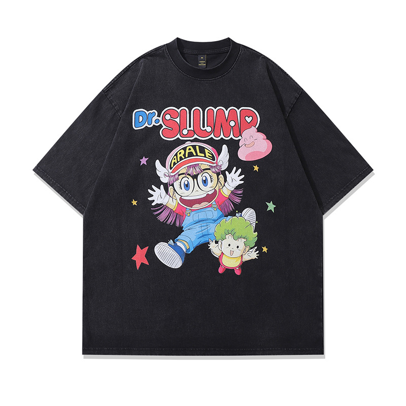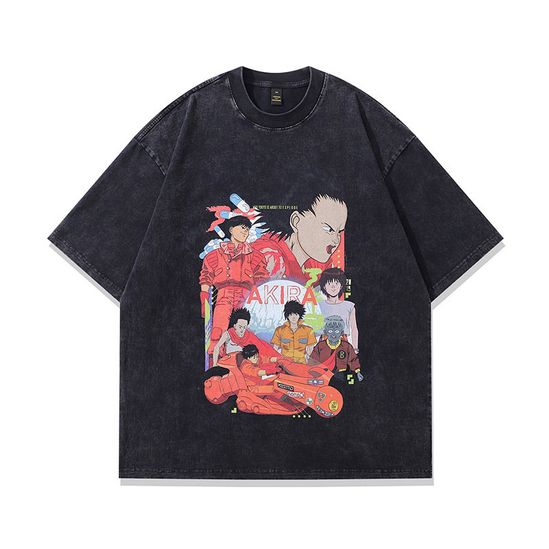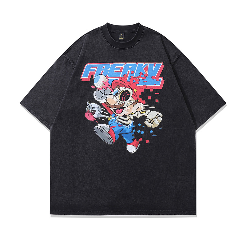 TKPA 오리지널 여름 뉴 하이 스트리트 하라주쿠 만화 애니메이션 프린트 반팔 티셔츠 남성 힙합 루스 탑 티스토어 가기