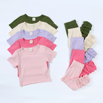 【款式】女童休闲运动套装春夏装韩版中大童女孩短袖T恤短裤两件套潮