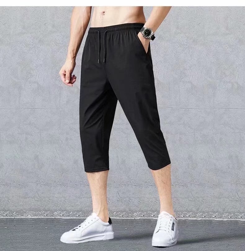 겉옷 바지 7 포인트 스트레이트 비치 팬츠 카프리 팬츠 남성용 여름 아이스 실크 반바지 얇은 느슨한 캐주얼 스포츠 트렌디스토어 가기