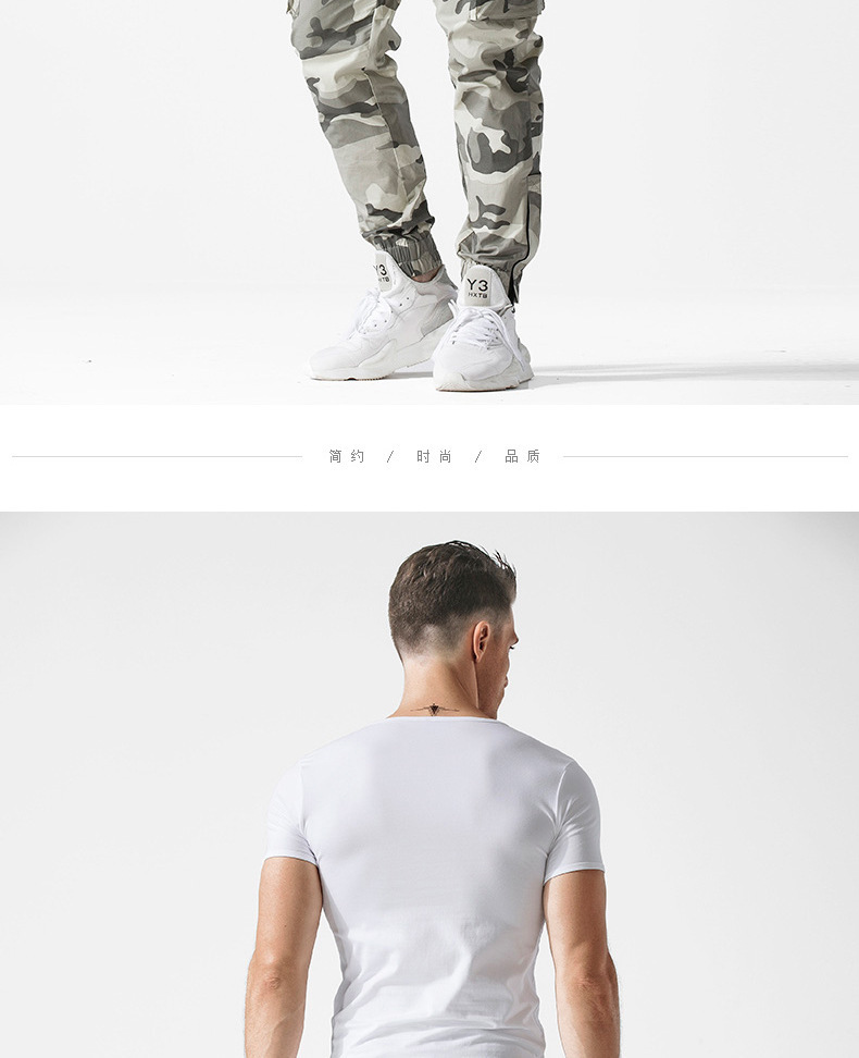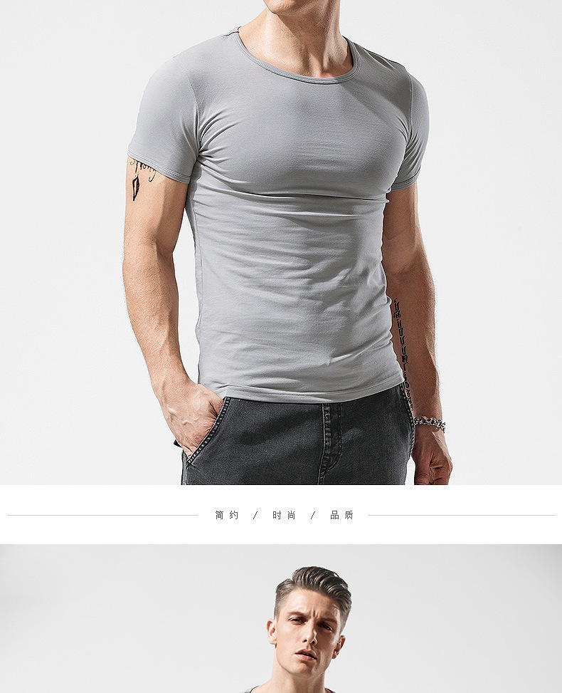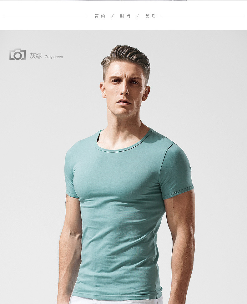 반팔 티셔츠 남성용 라운드 넥 솔리드 컬러 흑백 티셔츠 스트레치 슬림핏 타이트 남성베이스 셔츠 스포츠 반팔 탑