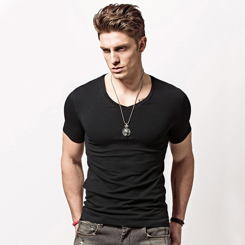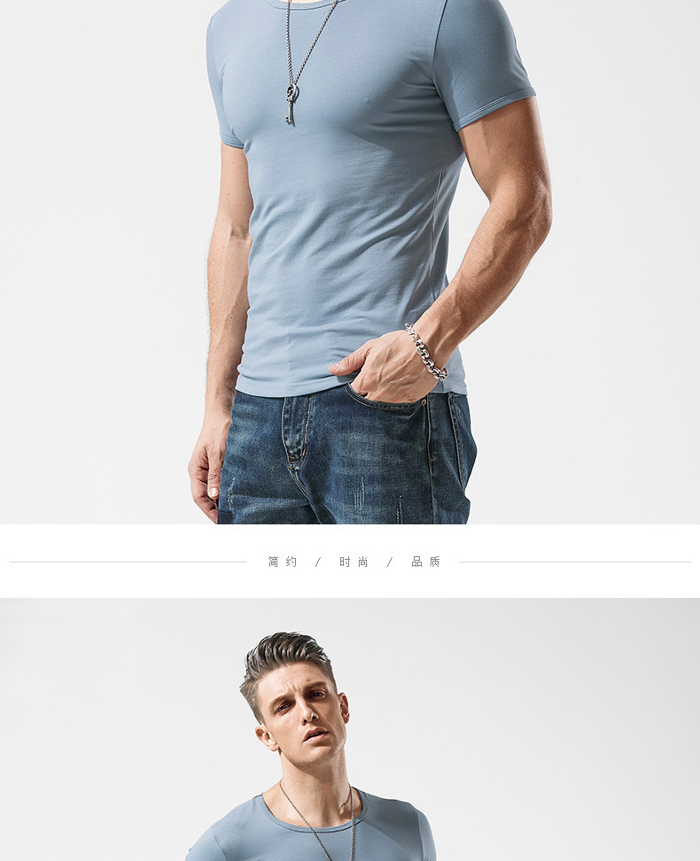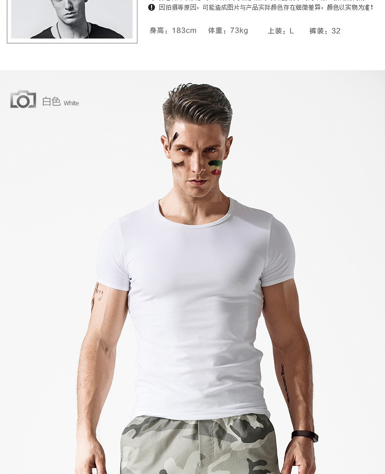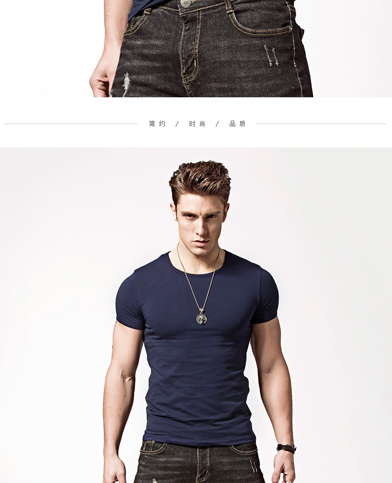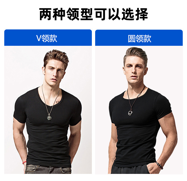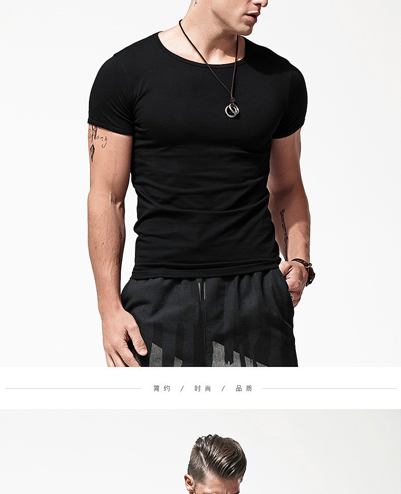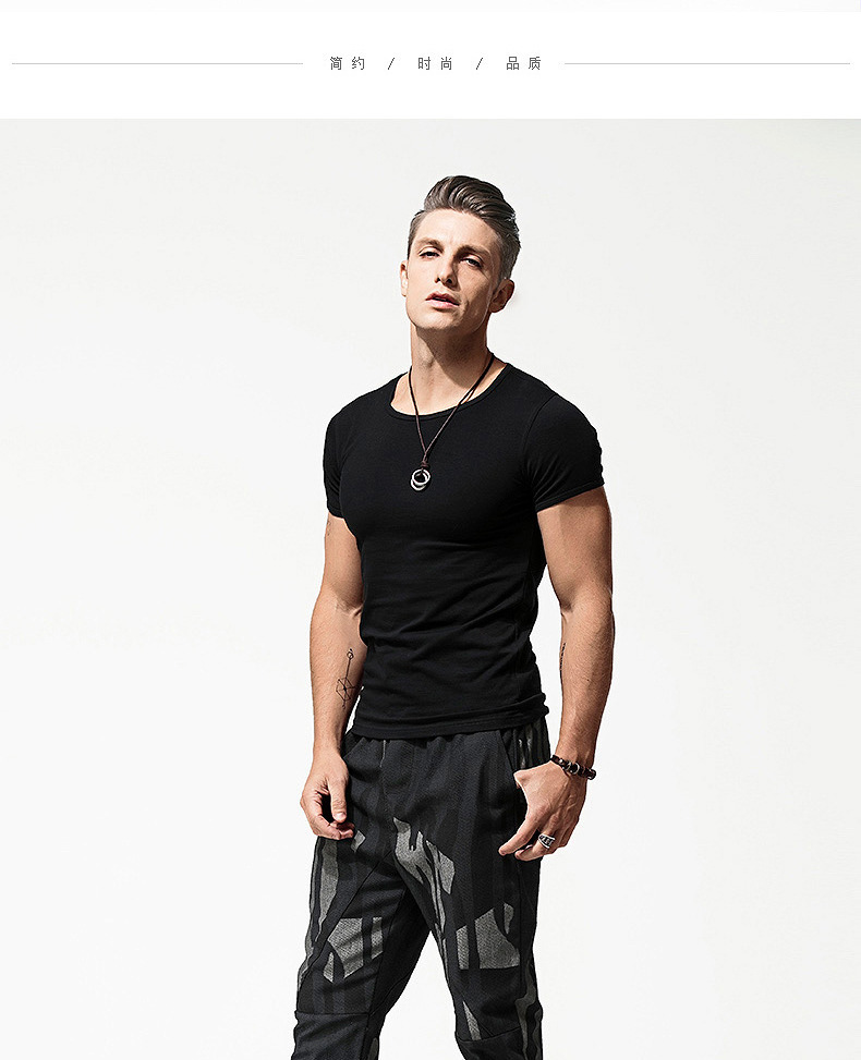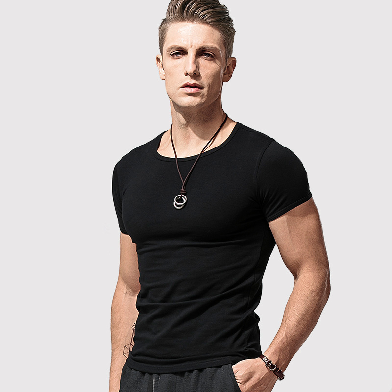 반팔 티셔츠 남성용 라운드 넥 솔리드 컬러 흑백 티셔츠 스트레치 슬림핏 타이트 남성베이스 셔츠 스포츠 반팔 탑스토어 가기