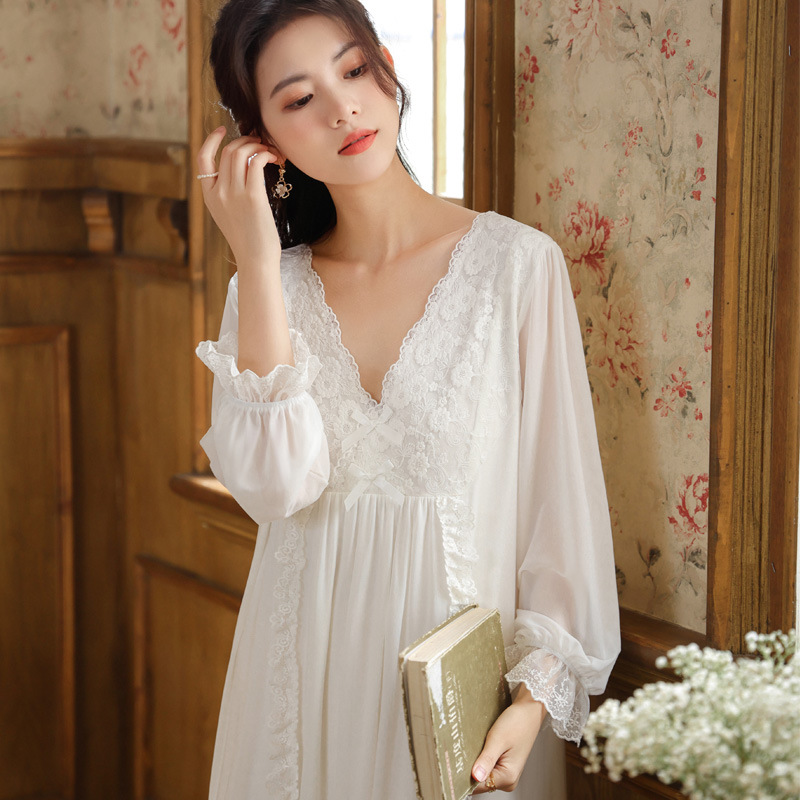 긴 소매 메쉬 잠옷 여자의 봄 궁전 스타일 긴 원피스 레이스 공주 잠옷 느슨한 플러스 사이즈 겉옷 가정 옷 가을스토어 가기