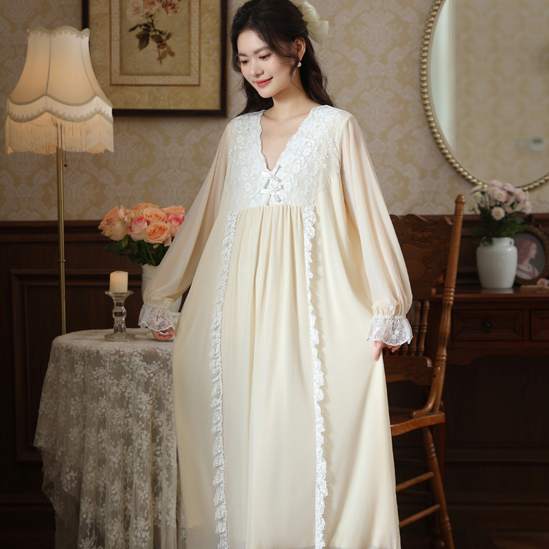 긴 소매 메쉬 잠옷 여자의 봄 궁전 스타일 긴 원피스 레이스 공주 잠옷 느슨한 플러스 사이즈 겉옷 가정 옷 가을